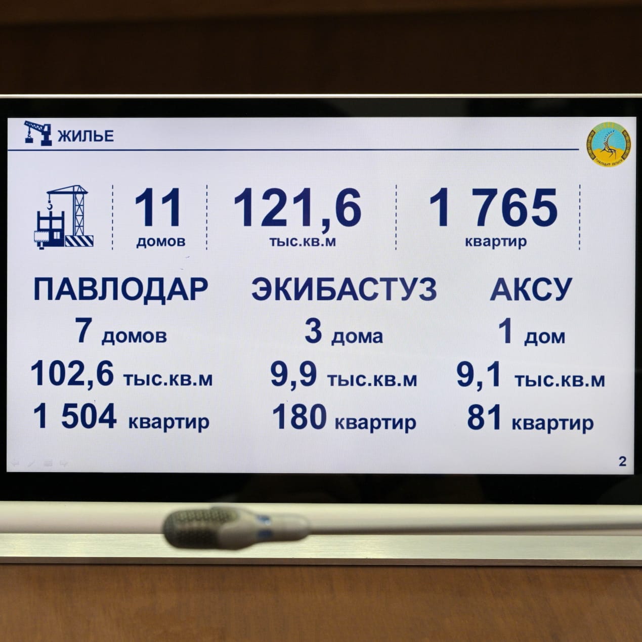 2025 жылы жалпы сомасы 14 млрд теңгеге 42 нысанның құрылысы жоспарланған. Соның ішінде биыл 1765 пәтерге арналған ауданы 121,6 мың шаршы метрді құрайтын 11 көппәтерлі тұрғын үйдің құрылысы жүргізілуде, оның ішінде: Павлодарда – 7 үй, Екібастұзда – 3, Ақсуда – 1 үй. Сондай-ақ, 3 млрд теңге қаражатқа жалға берілетін әлеуметтік тұрғын үйге арналған 217 пәтер сатып алу жоспарлануда.
