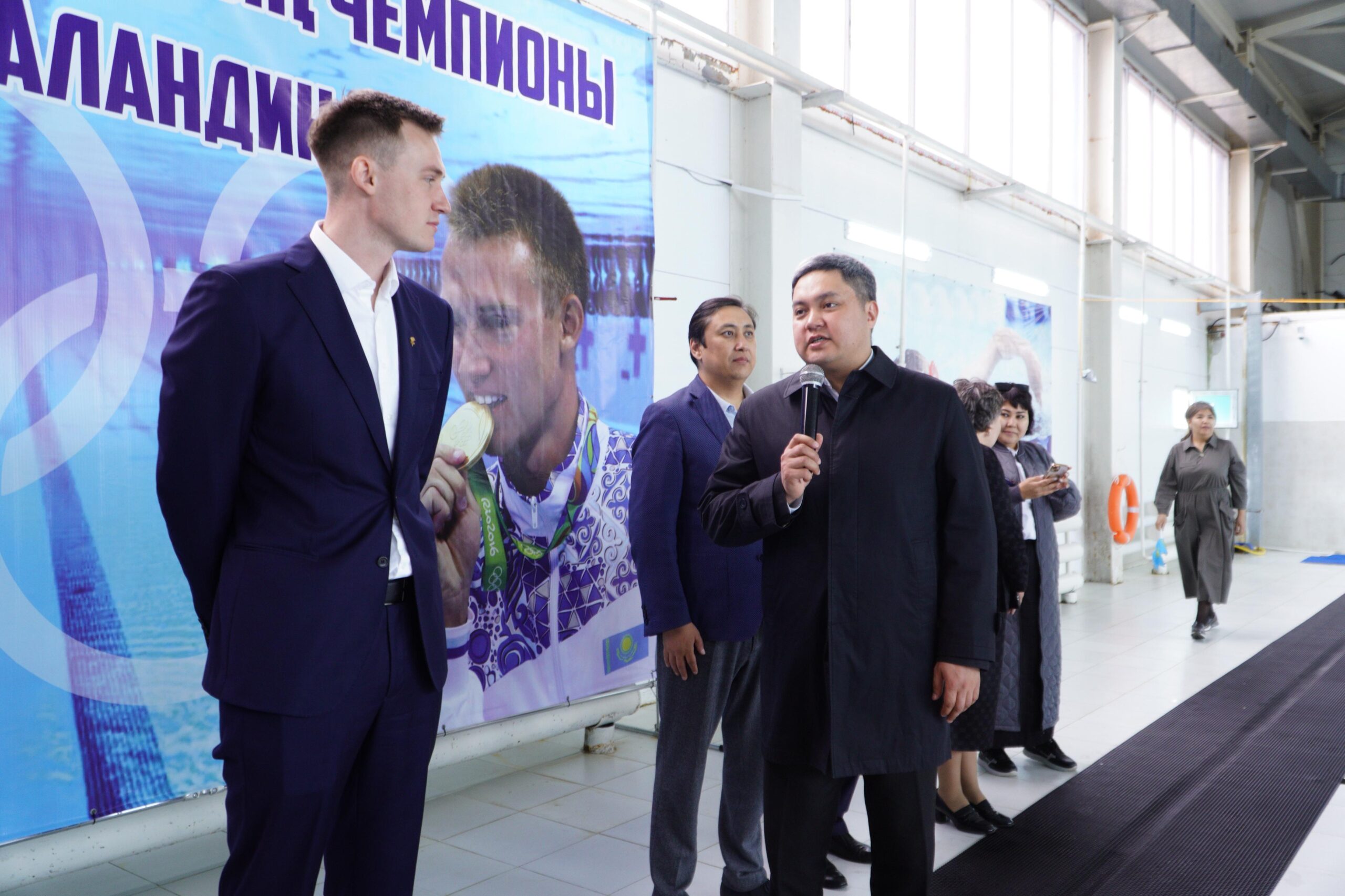 Кездесуде аудандағы су спортын дамыту бағытындағы жұмыстарды талқылады. Бұдан кейін Олимпиада чемпионы Дмитрий Баландин Мұғалжар балалар-жасөспірімдер спорт мектебінің жаңа бассейннің жұмысымен танысты.