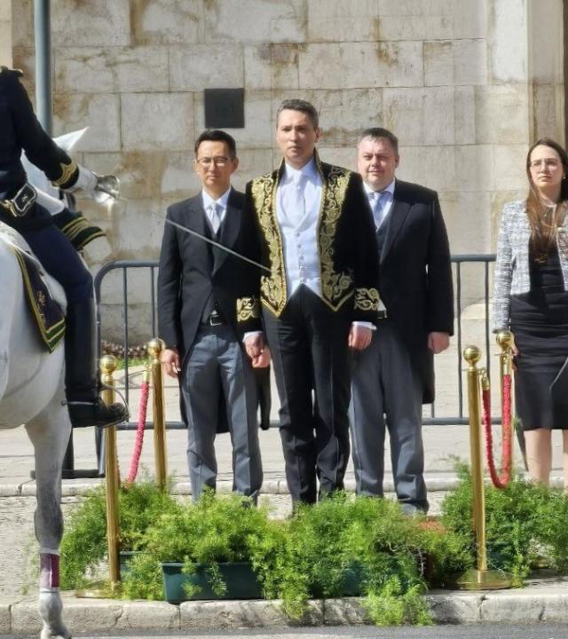 Лиссабон, 2025 жылғы 31 наурыз – «Праса-ду-Империу» тарихи маңызды алаңда және кейіннен Белен сарайында Қазақстан Республикасының Елшісі Жан Ғалиевтің Португалия Республикасының Президенті Марселу Ребелу де Соузаға сенім грамоталарын тапсыру рәсімі өтті.