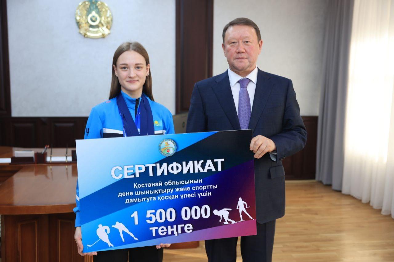 2025 жылдың 1 сәуірі күні облыс әкімі Калгари (Канада) қаласында өткен шорт-тректен жасөспірімдер арасындағы Әлем чемпионатының күміс жүлдегерлері Полина Омельчук, Анастасия Галечинамен кездесті. Кездесуге Қостанай облысы әкімдігі дене шынықтыру және спорт басқармасының басшысы да қатысты.