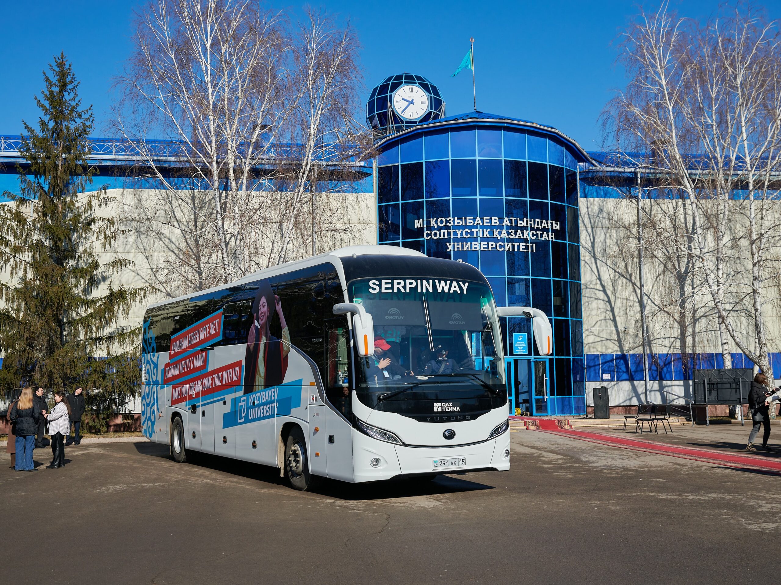 Бүгін Kozybayev University-дің брендтелген Serpin Way автобусы Петропавлдан Қазақстанның оңтүстік аймақтарына кәсіби бағдар беру турына аттанды. 1-20 сәуір аралығында Serpin Way 6500 шақырымнан астам жол жүріп, 30-ға жуық елді мекенді, ірі қалалар мен ауылдарды аралайды.