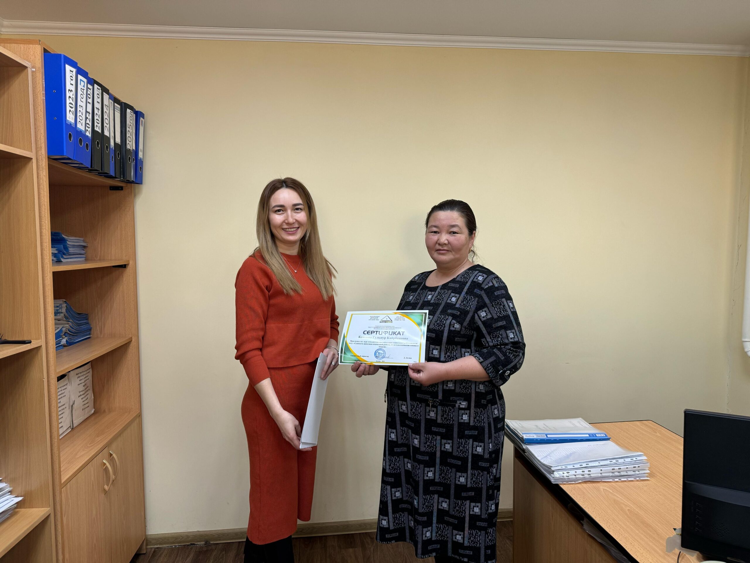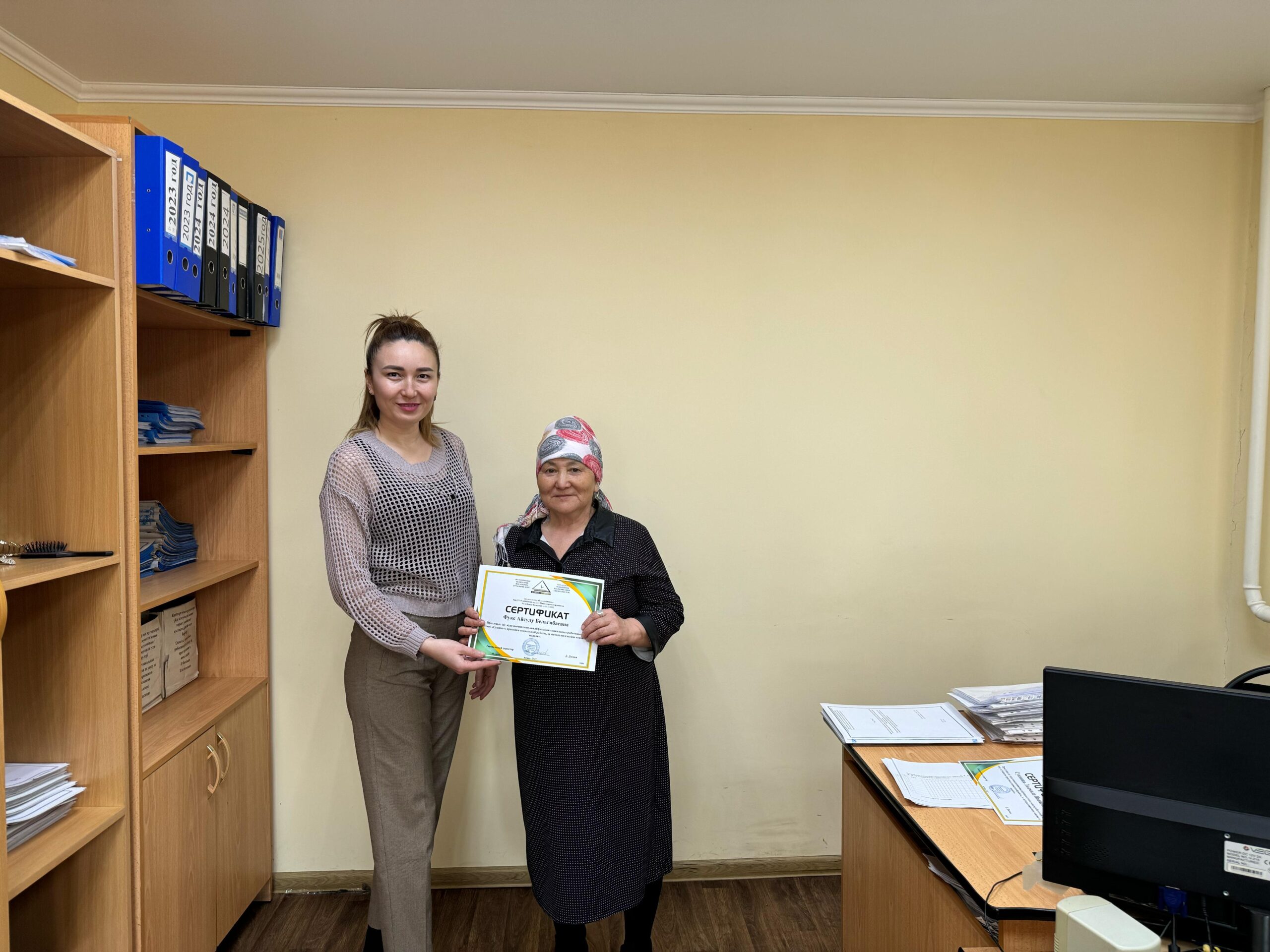 Үйде әлеуметтік көмек көрсету бөлімшесінің әлеуметтік қызметкерлері біліктілігін арттыру курстарынан өтті, оның қорытындысы бойынша оларға тиісті сертификаттар берілді