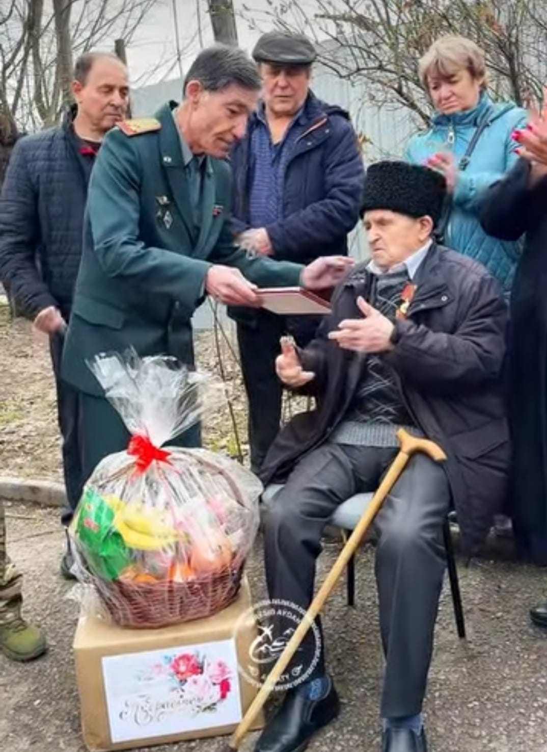 Ауданда өзінің 101 – ші туған күнін атап өткен Ұлы Отан соғысының қатысушысы, нағыз батыр-Василий Иванович Зинченко құттықтаулар қабылдайды.