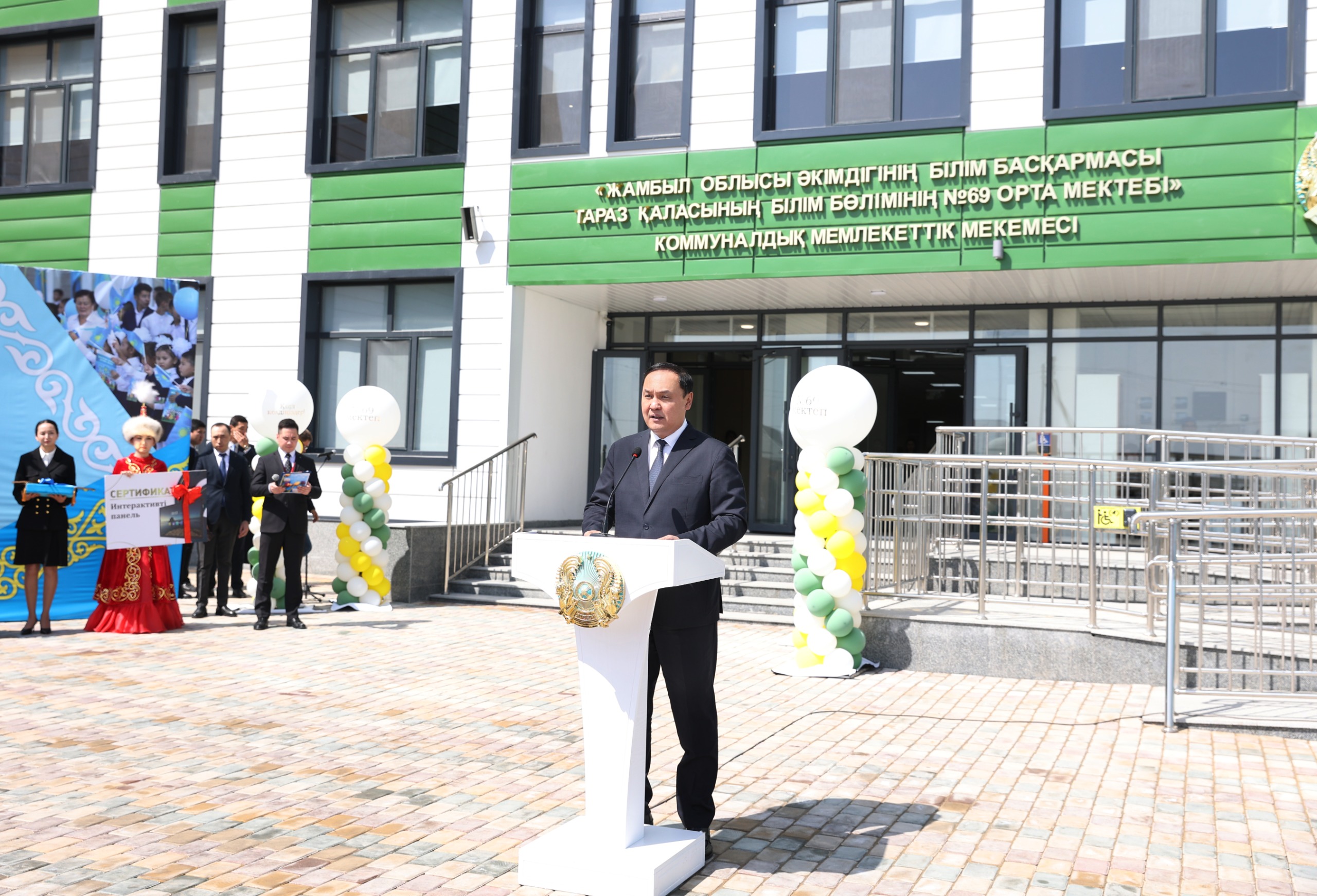 Мемлекет басшысының тапсырмасына сәйкес Жамбыл облысында «Жайлы мектеп» Ұлттық жобасы аясында төртінші білім беру нысаны пайдалануға берілді. Өңір басшысы Ербол Қарашөкеев Тараз қаласы «Ұлы дала» (15) шағынауданындағы №69 жаңа мектептің ашылу салтанатына қатысты.