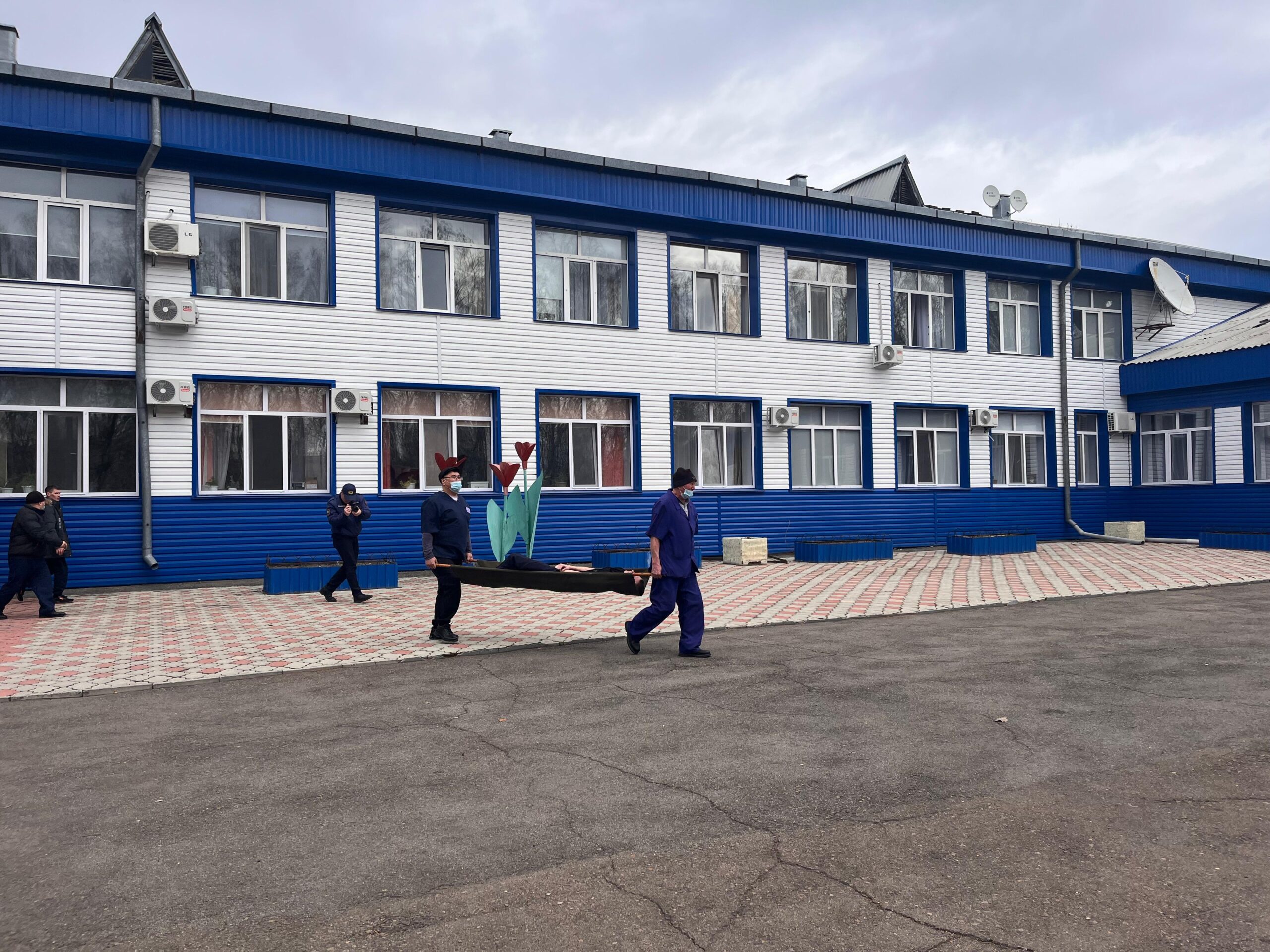 Оқу-жаттығу барысында өрт қауіпсіздігі бойынша дәріс нұсқаулықтары өткізілді, төтенше жағдай туындаған жағдайда қызметкерлер мен қызмет алушыларды эвакуациялау сызбалары, алғашқы өрт сөндіру құралдарын пайдалану мәселелері пысықталды.
