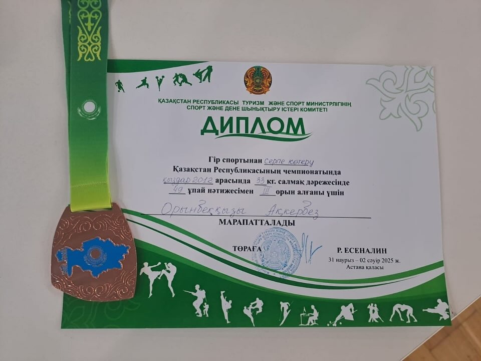 Ағымдағы жылдың 31 наурыз – 02 сәуір аралығында ГІР көтеруден Астана қаласында жастар және жасөспірімдер арасында өтіп жатқан Қазақстан Республикасының ЧЕМПИОНАТЫНДА “Бұқаралық және ұлттық спорт ойындарының орталығы” КММ-нің оқушысы Орынбекқызы Ақкербез жүлделі 3 орынға ие болды .Тана мырза ауылының оқушысы.