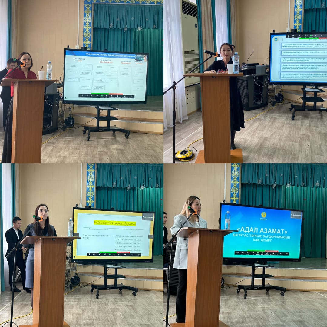 – Білім беру ұйымдарының педагогтары мен басшылары қызметінің тиімділігін бағалау әдістемесі туралы аудандық білім бөлімінің басшысы Э. М. Карабаева айтып, қорытындылады.
