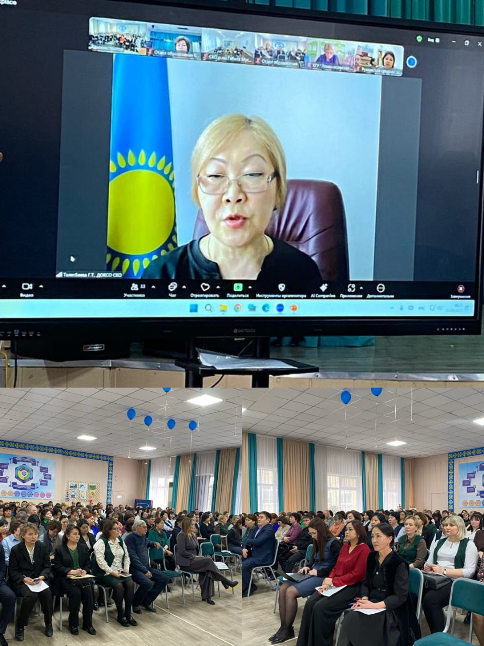 Кездесуге офлайн форматта 130-дан астам педагог пен мектеп басшылары қатысты, сондай-ақ онлайн-режимде талқылауға ауданның 45 білім беру ұйымдарының ұжымдары қосылды.