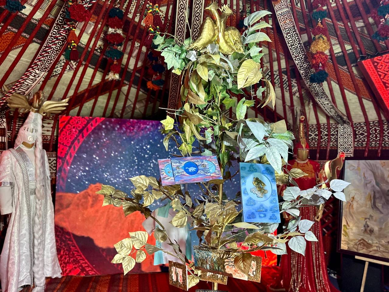 – Маңғыстаудың аңыздары мен мифтерін ғылыми негізде зерттеген, қазақ мифологиясының жаңа қырларын ашып, бұл өңірдің құпия сырларын әлемге танытқан ғалым – Серікбол Қондыбайдың зерттеулерінен тарихи-ғылыми деректерді алып келдік. Киіз үйде зерттеу кітаптары мен кейіпкерлерін таныстырып, көрсете аламыз. Көрмеге музейдің мифологиялық залдарының негізгі жәдігерлерін алып келдік, – дейді Серікбол Қондыбайдың мемориалдық музейінің директоры Римма Бердиева.