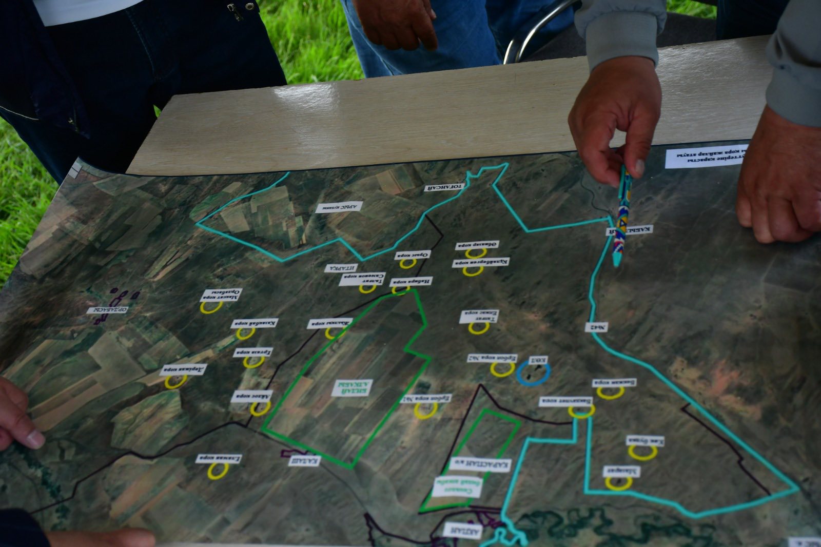 Келесі кезекте марокко шегірткесіне қарсы жүргізіліп жатқан химиялық өңдеу жұмыстарының барысымен танысу мақсатында Бадам және Бөржар ауылдары аймағына жол тартты. Бұл нысанда арнайы мамандармен зиянкеске қарсы күрес жұмысына тартылған техникалар, химиялық препаратты шашатын бүріккіштер мен өңделетін аумақ көлемінің жай-жапсарын талқылады.