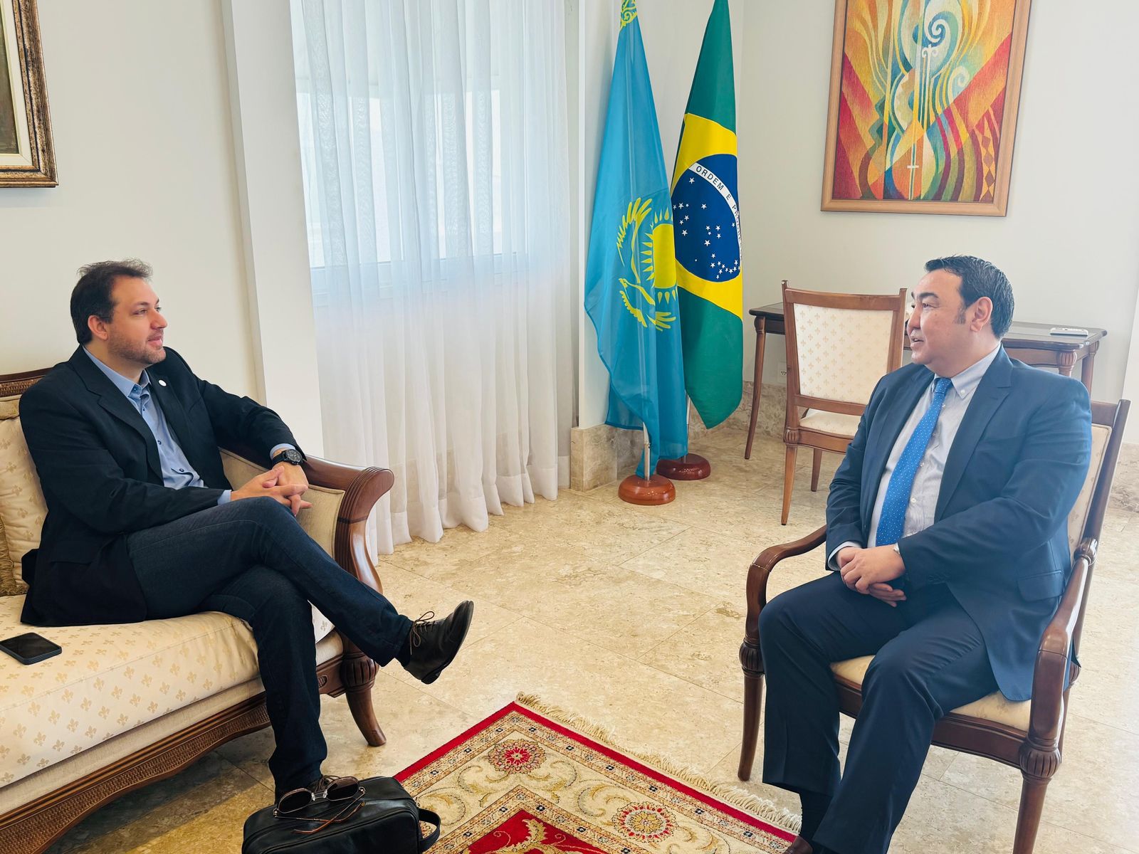 Бразилиа, 2025 жылғы 4 сәуір – Қазақстанның Бразилиядағы Елшілігінде Елші Болат Нүсіпов Минас-Жерайс штатының Федералдық үкіметі жанындағы өкілдігінің басшысы, хатшы Даниэль Анготти мырзамен кездесті.
