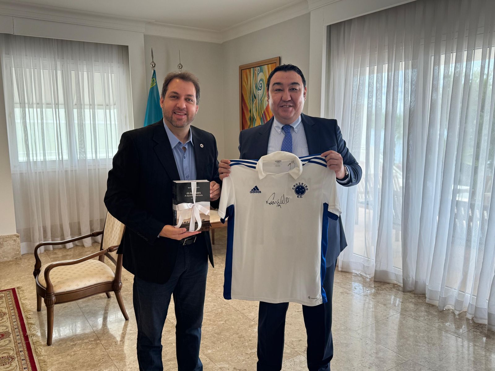Елші, әлем футболының аты аңызға айналған Роналдо Луис Назарио де Лиманың атынан шыққан «Крузейро» мемлекеттік футбол клубының басшылығына Елшілікке көрсеткен сыйы мен назары үшін, сондай-ақ клуб басшылығының Елшіліктің Республика күніне орай өткізілетін ресми қабылдауларына жыл сайынғы қатысуы үшін алғысын білдірді. Осы тұрғыда, тараптар, балалар мен жасөспірімдерді футболға кәсіби даярлау саласында ынтымақтастық орнату мүмкіндіктерін талқылады.