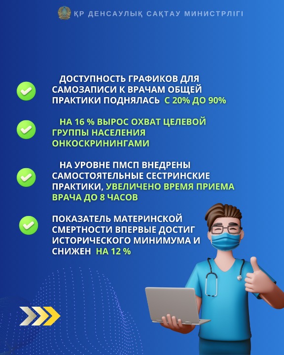 Соңғы 10 жылдың ішінде алғаш рет ана мен бала денсаулығын сақтау саласында нәресте өлімін 8,3%-ға, ана өлімін 12%-ға төмендету бойынша ең жоғары көрсеткіштерге қол жеткізілді.