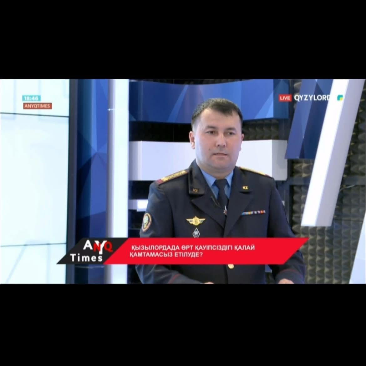 Бүгін Қызылорда облысы ТЖД бастығының бірінші орынбасары Жасұлан Түйменов “QYZYLORDA” телеарнасының “ANYQ Times” бағдарламасында «Өрт қауіпсіздігін сақтау мен дала өртін болдырмау жұмыстары туралы» тікелей эфирде сұқбат берді. Сұқбат барысында өңірде тіркелген өрттер және олардың орын алу себеп-салдары туралы, өрттің алдын алу бағытында атқарылып жатқан жұмыстар туралы атап өтілді.