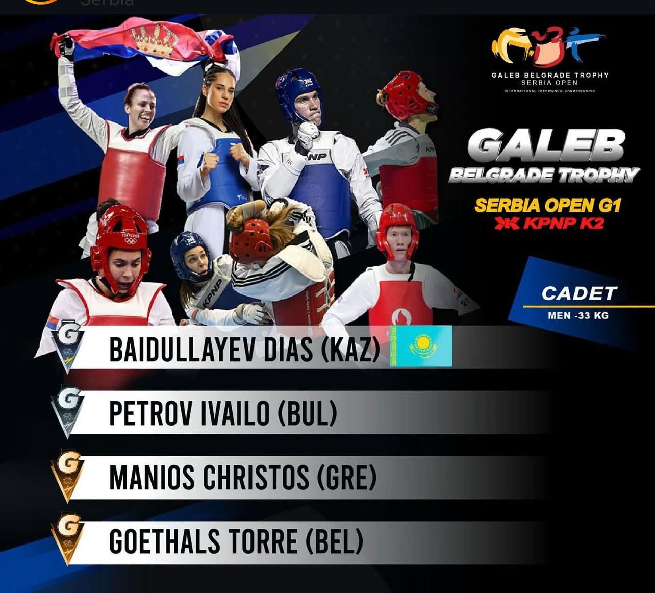 5-6 сәуірде Белградта (Сербия) кадеттер мен жастар арасында Serbia Open G1 халықаралық жарысы өтті. Жарысқа 800-ден астам спортшы қатысып, 30-ға жуық елдің өкілдері бақ сынады. Бұл турнир әлемнің түкпір-түкпірінен келген қатысушыларға өз шеберліктерін көрсетіп, халықаралық аренада бағын сынауға мүмкіндік берді.