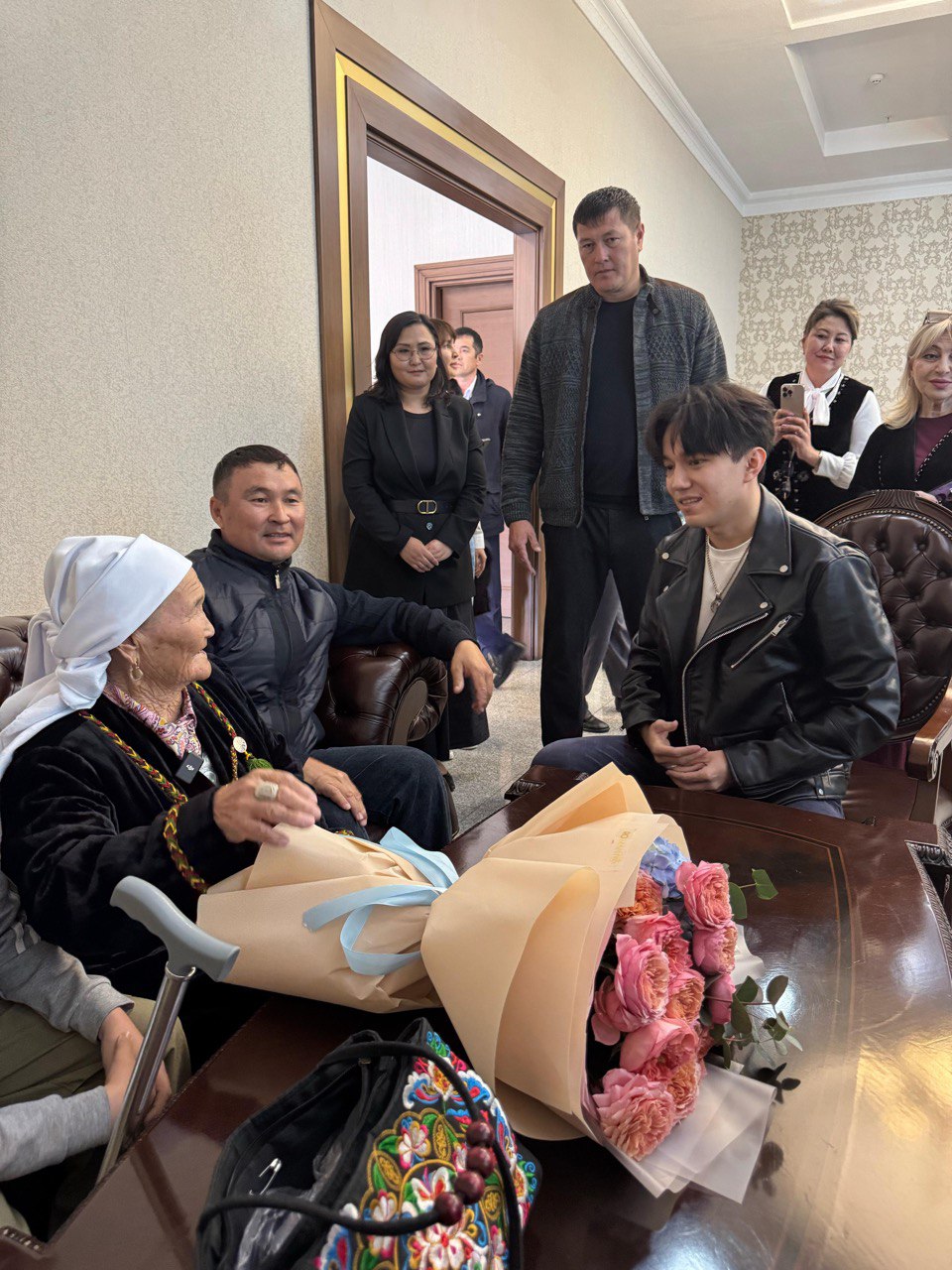 Бүгін Димаш Құдайберген ақ тілеулі анамен арнайы кездесіп, өзіне арнаған шашақты алды.