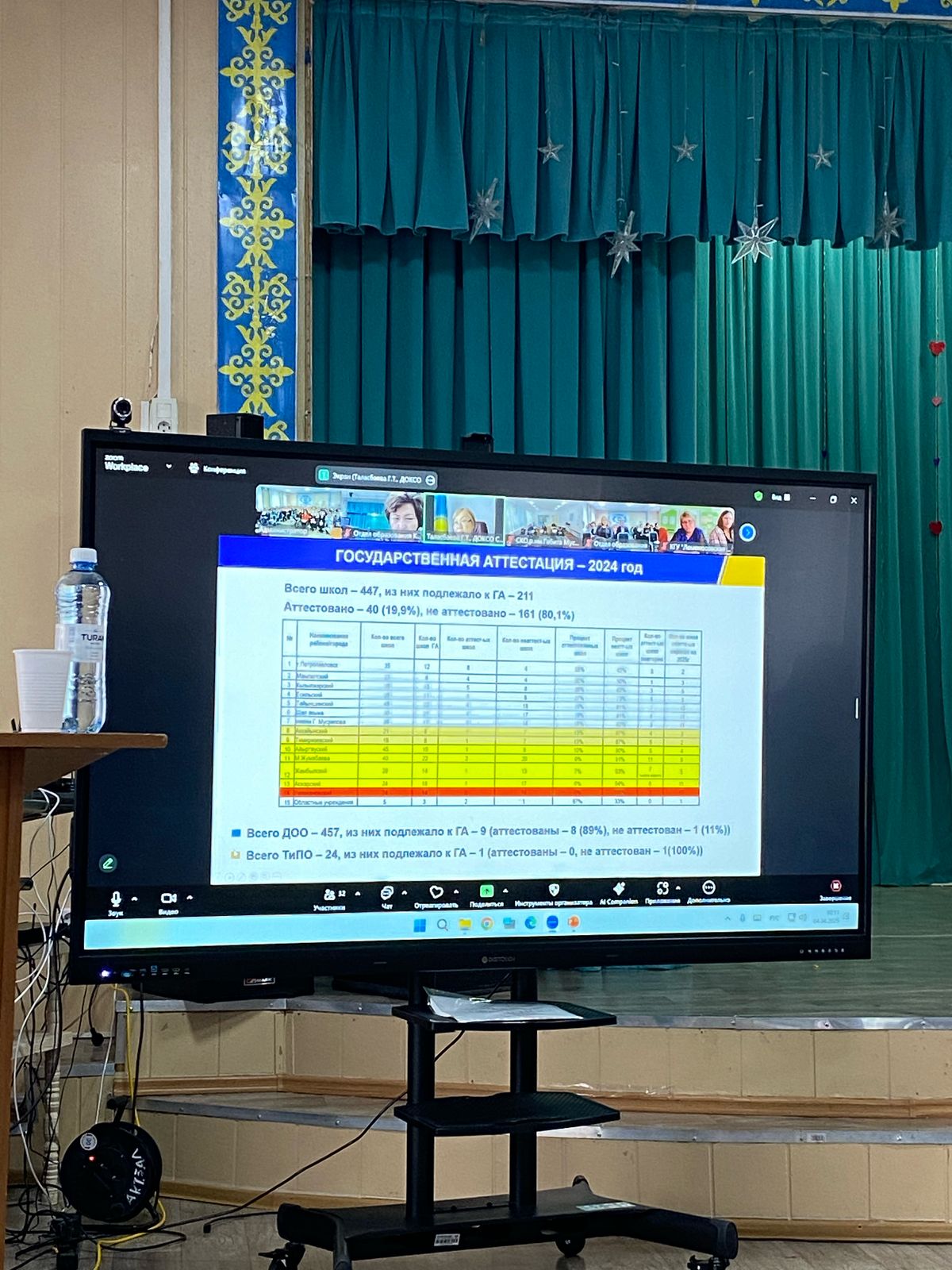 Департамент басшысы «Білім сапасы мәселелері туралы» тақырыбында баяндама жасады. Кеңес жұмысына білім бөлімінің мамандары мен әдіскерлері, мектеп директорлары, мектеп директорларының оқу ісі жөніндегі орынбасарлары, мектеп директорларының тәрбие жұмысы жөніндегі орынбасарлары, мектепке дейінгі, шағын орталықтардың әдіскерлері, мектеп педагогтері қатысты.