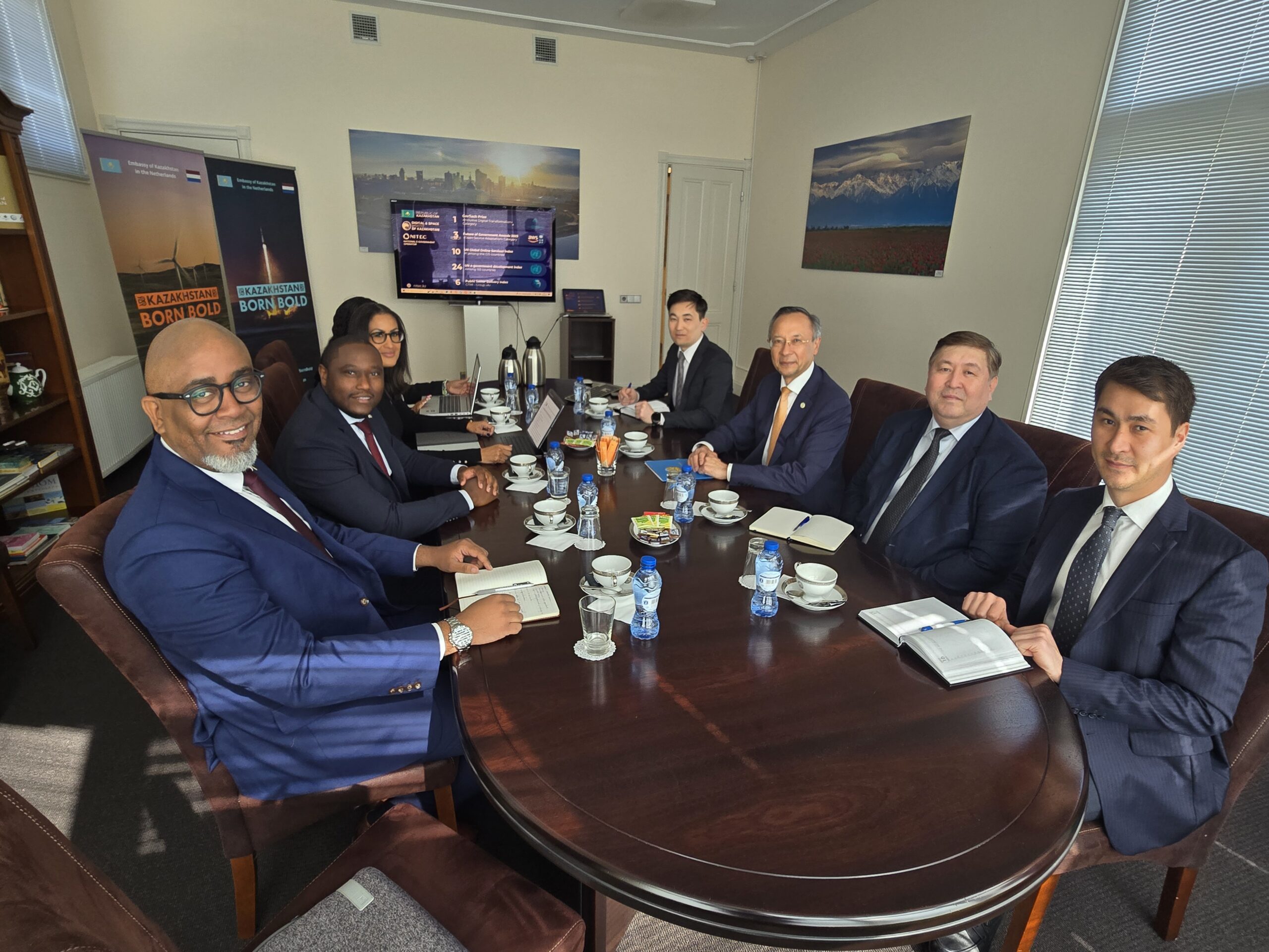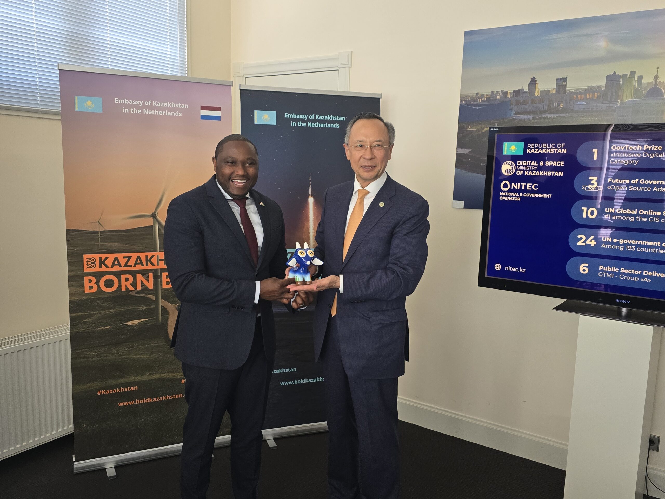 Гаага, 2025 жылғы 7 сәуір – Нидерланд Корольдігіне кіретін автономды ел – Кюрасаоның Әділет, Үкімет істері, Жоспарлау және Мемлекеттік қызмет министрі Шалтон Хато бастаған делегация цифрландыру, ақпараттық технологиялар және электрондық үкімет салаларындағы екіжақты ынтымақтастық перспективаларын талқылау мақсатында Қазақстан Республикасының Гаага қаласындағы Елшілігіне келді. Кездесу Елші Қайрат Әбдірахмановтың осы Кариб аралына жасаған жұмыс сапарының жалғасы ретінде өтті. Аталған сапар барысында бұл өзекті мәселелер алғаш рет талқыланған болатын.