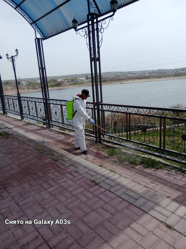 Мекеме қызметкерлері саябақтардағы жол аяқтарды ретсіз өскен зиянды шөптерден тазарту мақсатында, дәрі себу жұмыстарын атқаруда.