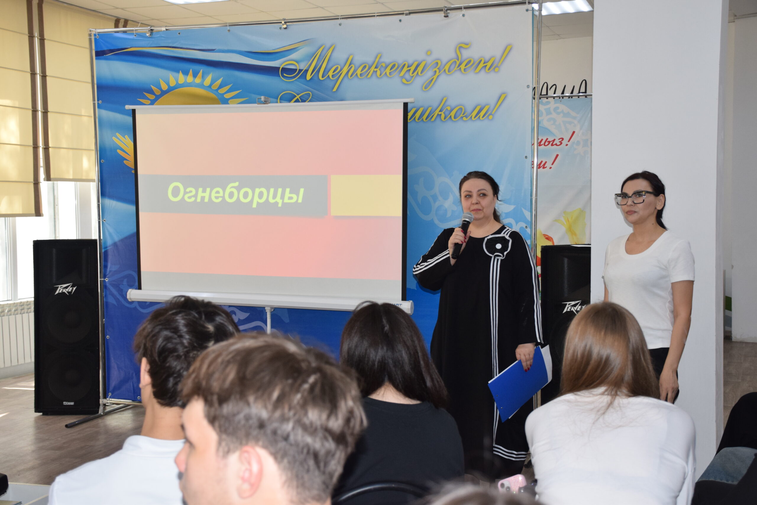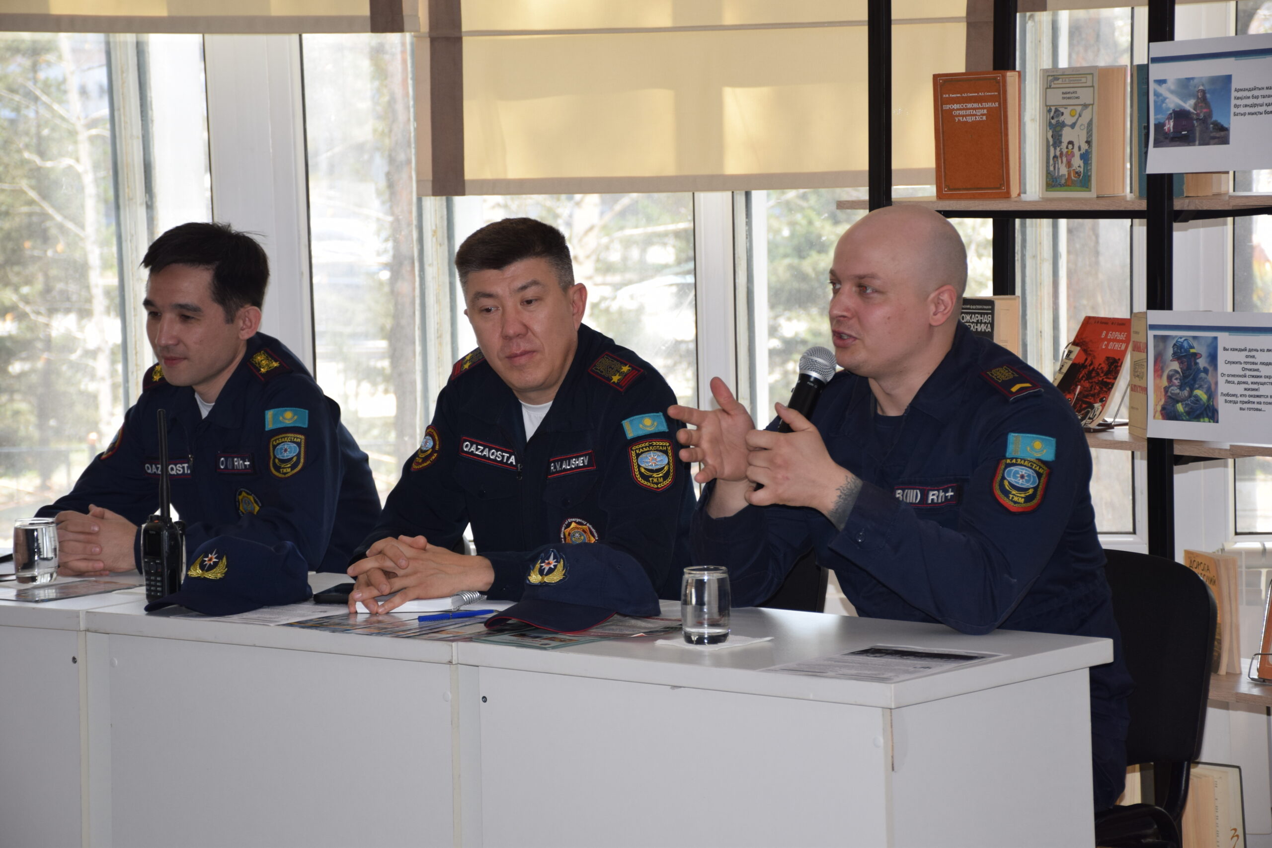 Қауіпсіздік мәселелеріне, өрттің пайда болу себептеріне және олар туындаған жағдайда дұрыс әрекет етуге ерекше назар аударылды. Тыңдаушыларға М. Ғабдуллин атындағы азаматтық қорғау Академиясына түсу және одан әрі жұмысқа орналасу шарттары айтылды. Оқушылар талқылауға белсенді қатысып, өрт сөндірушілерге еңбектері үшін алғыстарын білдірді.