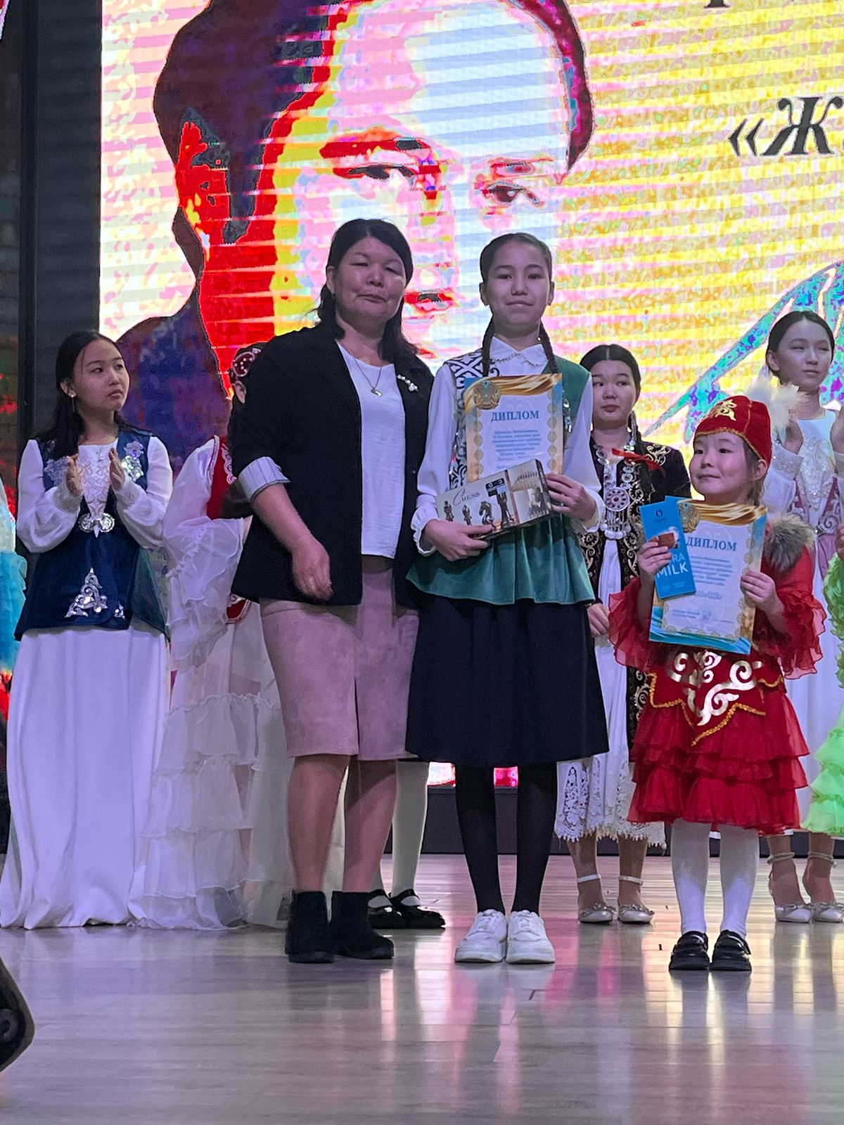 12-17 жас аралығынан 1 – орын Новоишим қазақ орта мектебінен Шарбекова Аяулым, 2 – орын №2 Новоишим орта мектебінен Сейлханова Аңсар, 3 – орын Новоишим қазақ орта мектебінен Базарбай Мадина иеленді. Барлық қатысушыларға диплом және естелікке сыйлықтар табысталды.