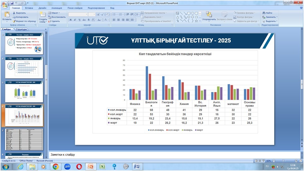 Ағымдағы жылдың 8 сәуірінде білім беру ұйымдарының басшыларымен, директорлардың оқу ісі жөніндегі орынбасарларымен, пән мұғалімдерімен және кәсіптік бағдар берушілермен 2025 жылғы Ұлттық бірыңғай тестілеудің наурыз кезеңін өткізу қорытындысы бойынша кеңес өтті.