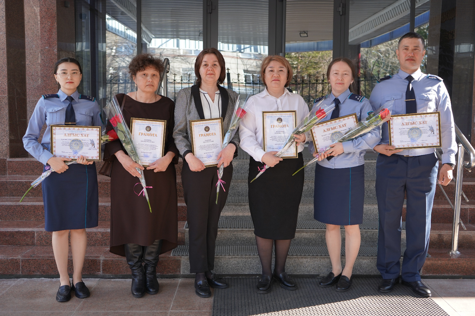 Тағы 9 қызметкер грамоталармен және алғыс хаттармен марапатталды. Салтанатты шара кәсіби мерекелерге: 5 сәуір – ҚР көші-қон қызметі, ал 6 сәуір – ҚР тергеу органдары қызметкерлерінің күндеріне орайластырылған.