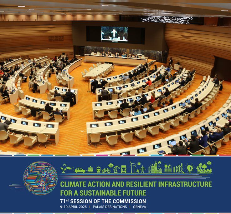 Женева, 2025 жылғы 11 сәуір – 2025 жылғы 9-10 сәуірде Женевада өткен Біріккен Ұлттар Ұйымы Еуропа үшін экономикалық комиссиясының (БҰҰ ЕЭК) 71-ші сессиясы барысында Еуропа, Америка және Орталық Азияның 56 мүше мемлекеті климаттың өзгеруі және инфрақұрылымды дамыту жолындағы өңірлік ынтымақтастықтың басымдықтарын талқылады.