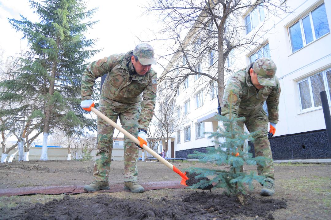 Бұған қоса қызметтік жатақхана аумағында көк шырша көшеттері отырғызылды.