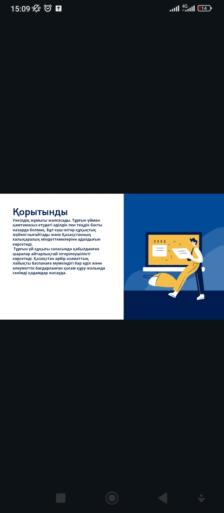 Тұрғын үй құқығы саласында қабылданған шаралар айтарлықтай ілгерілеушілікті көрсетеді. Қазақстан әрбір азаматтың лайықты баспанаға мүмкіндігі бар әділ және әлеуметтік бағдарланған қоғам құру жолында сенімді қадамдар жасауда.
