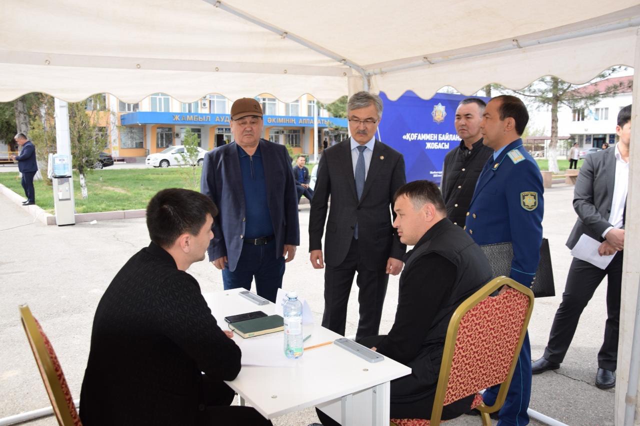 «Қоғаммен байланыс» жобасын іске асыру аясында Жамбыл ауданында уәкілетті мемлекеттік органдар мен қоғам қайраткерлерінің қатысуымен халықпен тікелей байланыс орнатуға зор мүмкіндік беретін азаматтарды қабылдау бойынша ауқымды акция өтті.