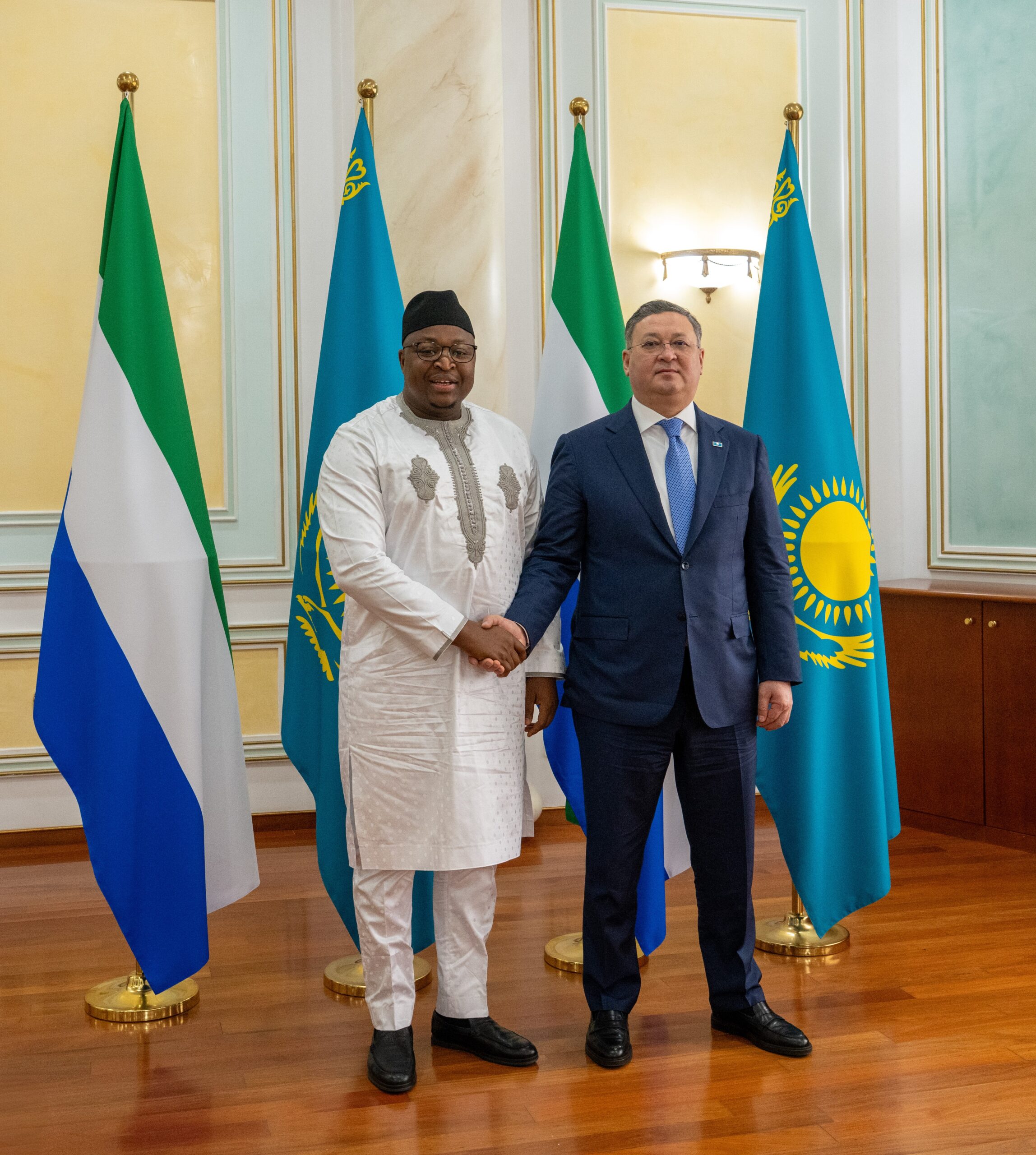 Астана, 2025 жылғы 8 сәуір – Қазақстан Республикасы Премьер-министрінің орынбасары – Сыртқы істер министрі Мұрат Нұртілеу Астанаға алғашқы ресми сапармен келген Сьерра-Леоне Республикасының Сыртқы істер және халықаралық ынтымақтастық министрі Тимоти Муса Каббамен кездесті.
