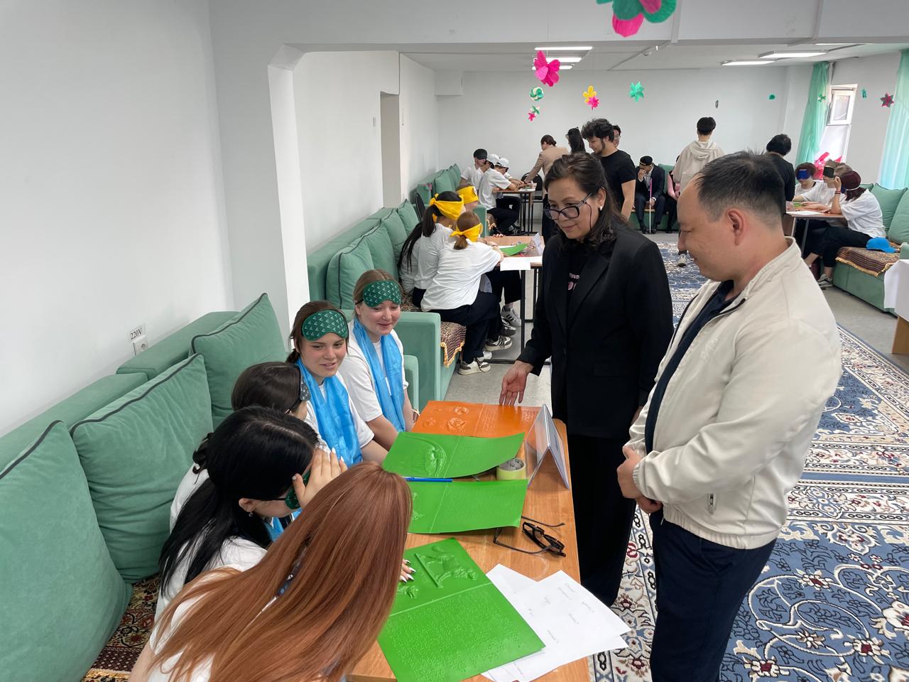 Тренингке колледж студенттері белсене қатысып, көру қабілеті шектеулі жандардың әлемді қалай сезінетінін түсінуге мүмкіндік алды.