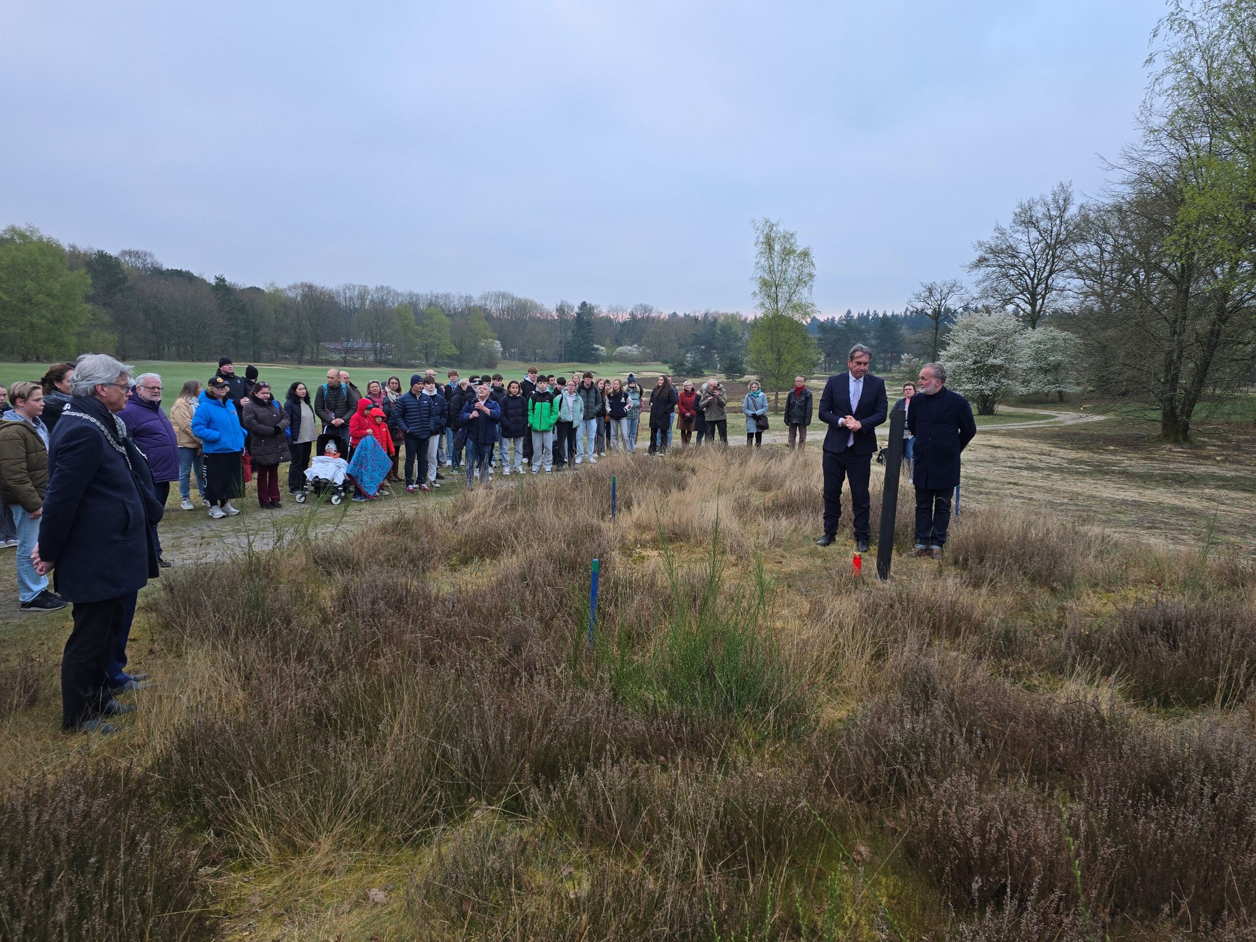 Салтанатты шара таң шапағында, «Кудрист» обелискісі жанында (сарбаздар жерленген орман алқабының атауы бойынша) ұйымдастырушылар – «Кеңестік Даңқ Өрісі» қорының (Stichting Sovjet Ereveld) жетекшілері Рогир Рейкерс пен Ремко Рейдингтің құттықтау сөздерімен басталды, олардың бірі Қазақстанға сапары мен Лёсденде әкелерінің жерленген орнын табуға көмектескен отбасылармен кездесулері туралы жылы естеліктерімен бөлісті. Үлкен аза шырағы қайғылы оқиға орын алған жерде – бұрынғы «Амерсфорт» концлагерінің маңында жағылып, бір минут үнсіздік жарияланды.