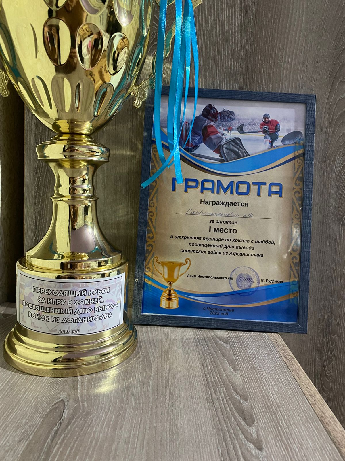 Салқынкөл ауылдық округінің спортшылары Ауғанстаннан әскерді шығару күніне арналған хоккей ойыны үшін аудандық командалар арасында ауыспалы кубок жеңіп алды.