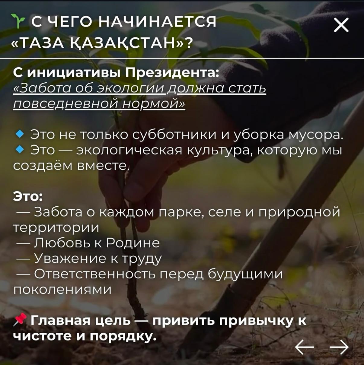 «Таза Қазақстан» — бұл жай науқан емес, бұл мәдениет. Бұл – әр азаматтың санасында қалыптасатын жауапкершілік. Баладан бастап кәсіпкерге дейін», – деп қорытындылады облыс әкімі Құмар Ақсақалов.