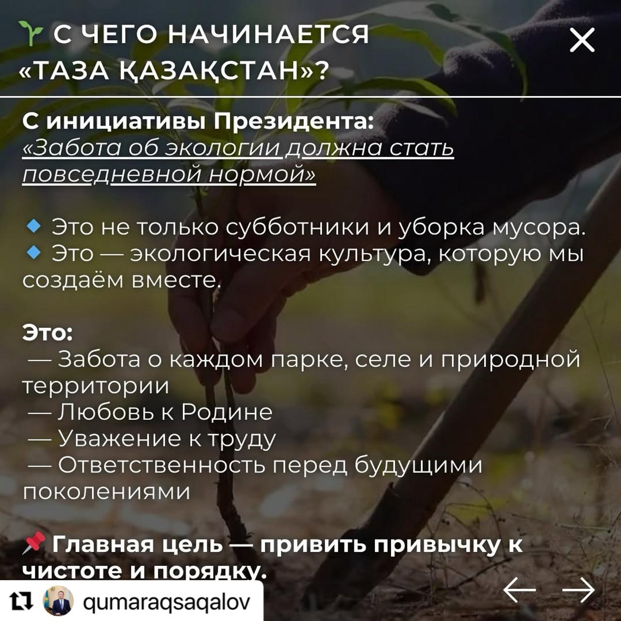 «Таза Қазақстан» бағдарламасы – жаңа экологиялық мәдениеттің негізі