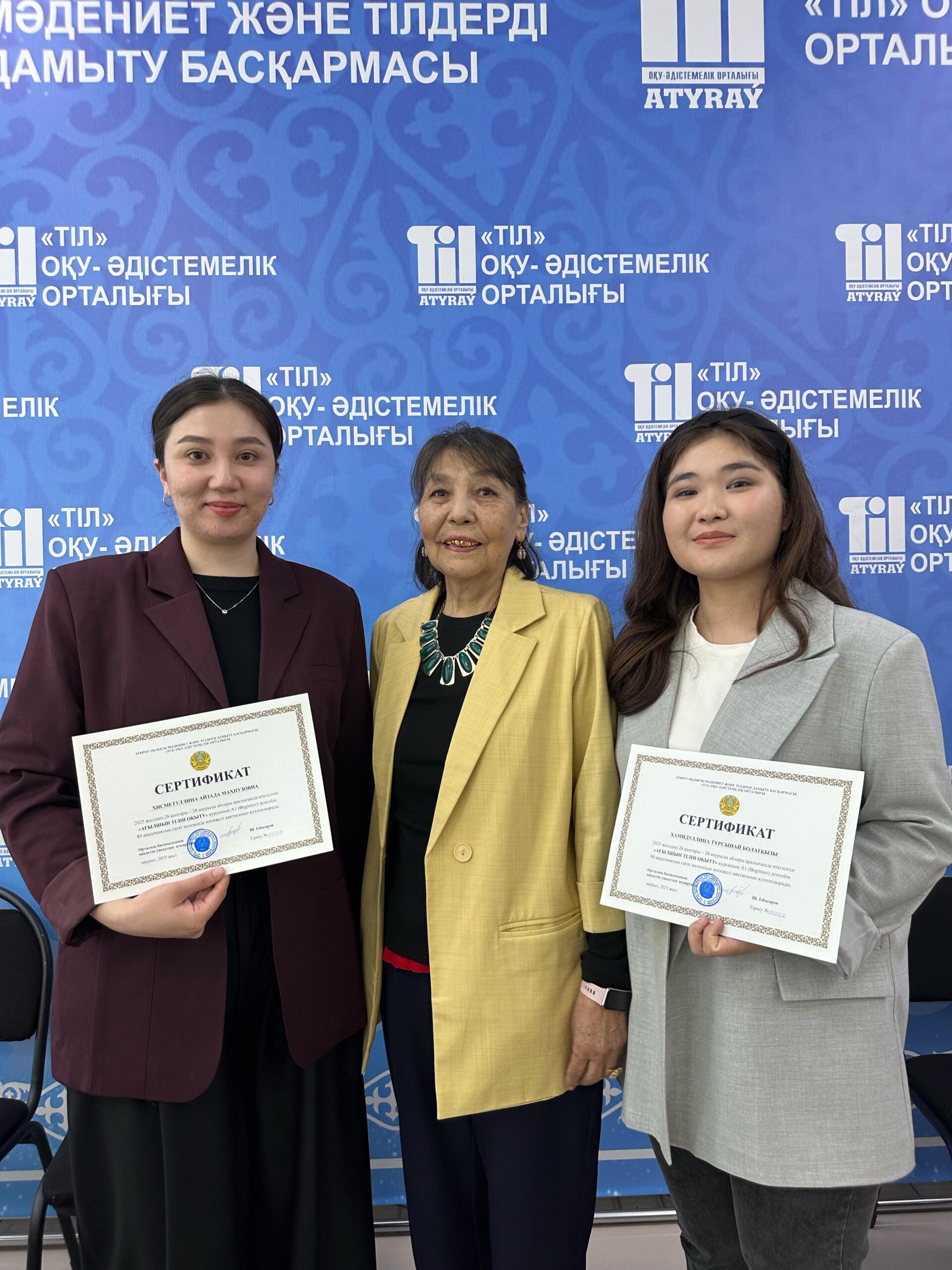 Атырау облысы Мәдениет және тілдерді дамыту басқармасының «Тіл» оқу-әдістемелік орталығында «Ағылшын тілін оқыту» курсының А1 (Beginner) деңгейін аяқтаған тыңдаушыларға сертификаттар табысталды.