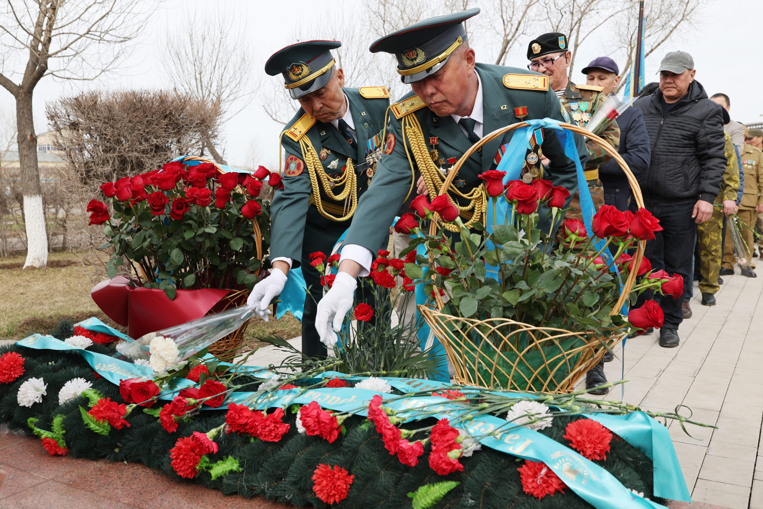 Жиналған көпшілік жауынгерлерді еске алып, ескерткішке гүл шоқтарын қойды. Жиналыс ерлікпен қаза тапқан жауынгерлерді еске алу үшін бір минут үнсіздіктен басталды.