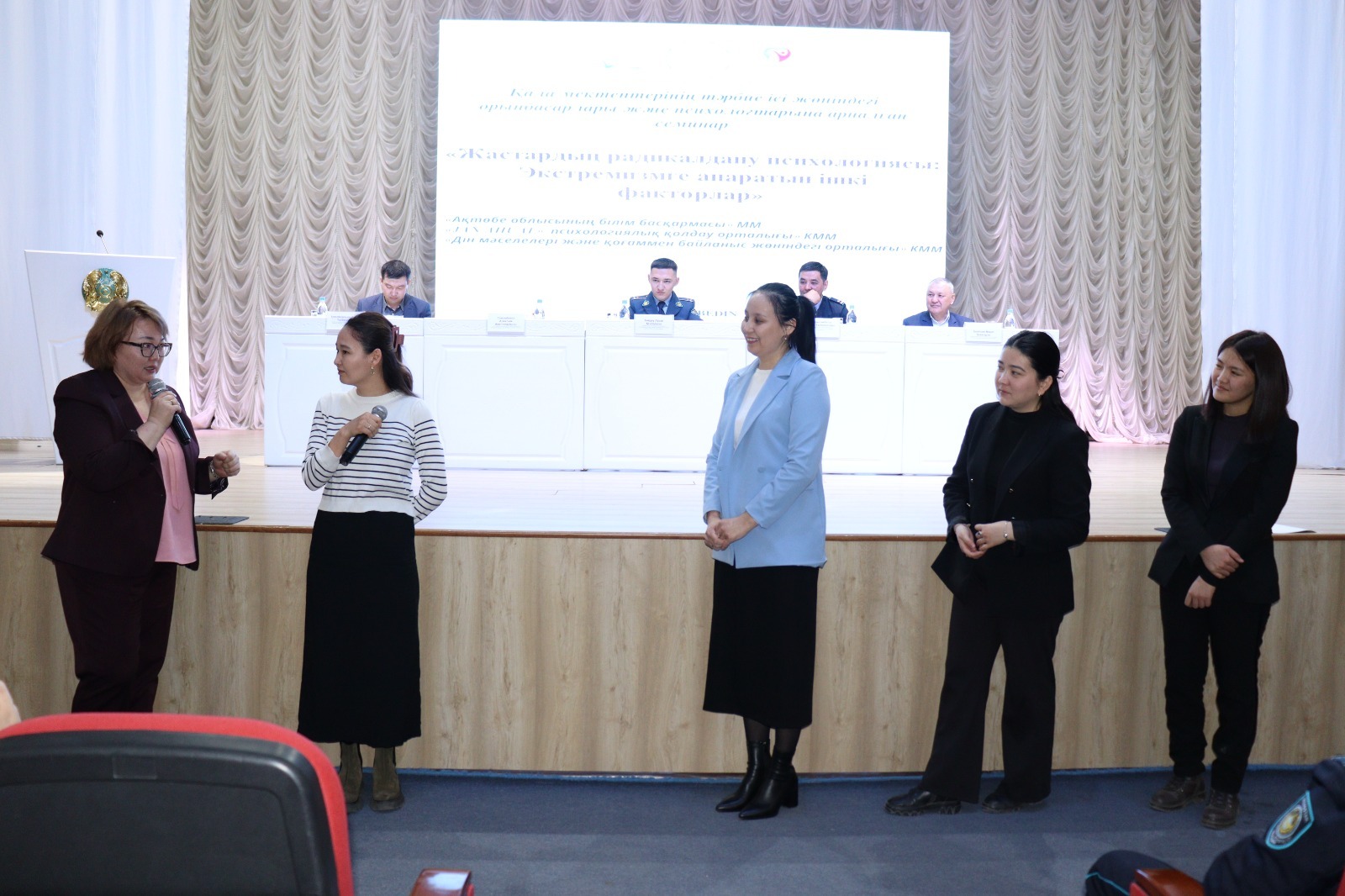 Бүгінгі таңда әлеуметтік желідегі қауіпсіздік мәселелері және осы құбылыстарға қарсы тұру өзекті болып отыр. Осыған орай «Жастардың радикалдану психологиясы: Экстремизмге апаратын ішкі факторлар» тақырыбында жиналыс өткізілді. Іс-шараға Ақтөбе қаласындағы жеке және мемлекеттік білім беру ұйымдарының 200-ге жуық тәрбие ісі жөніндегі орынбасарлары мен мектеп психологтары қатысты.