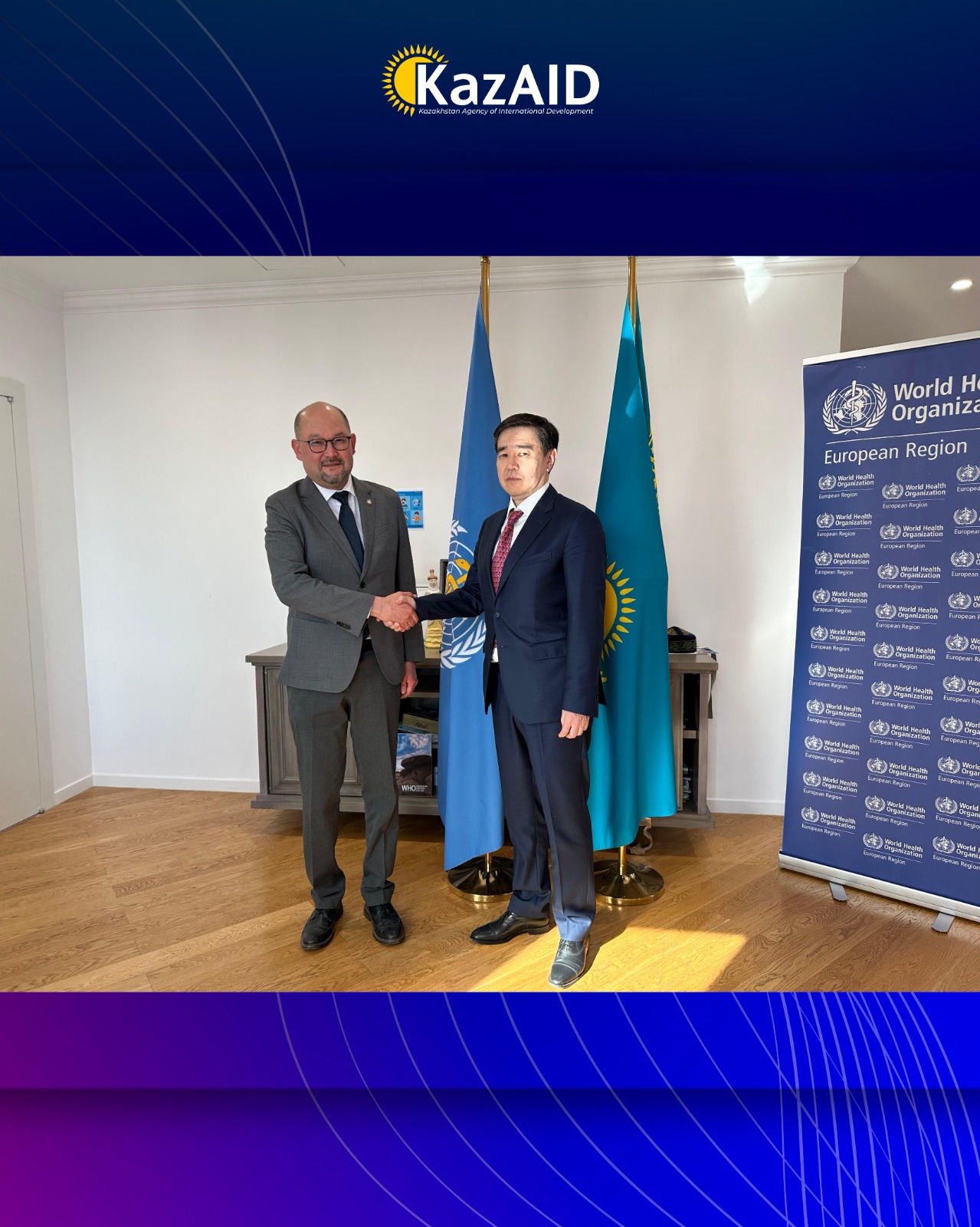 2025 жылғы 8 сәуір, Астана – «KazAID» Қазақстандық халықаралық даму агенттігінің Басқарма Төрағасы д-р. А. Арыстановтың ДДҰ-ның Еуропалық өңірлік бюросының ТБ жөніндегі өңірлік кеңесшісі д-р. А. Еділбаевпен және ДДҰ-ның Қазақстандағы елдік кеңсенің Денсаулық сақтау саласындағы саясат мәселелері жөніндегі кеңесшісімен д-р. С. Георгитамен техникалық кездесуі өтті.