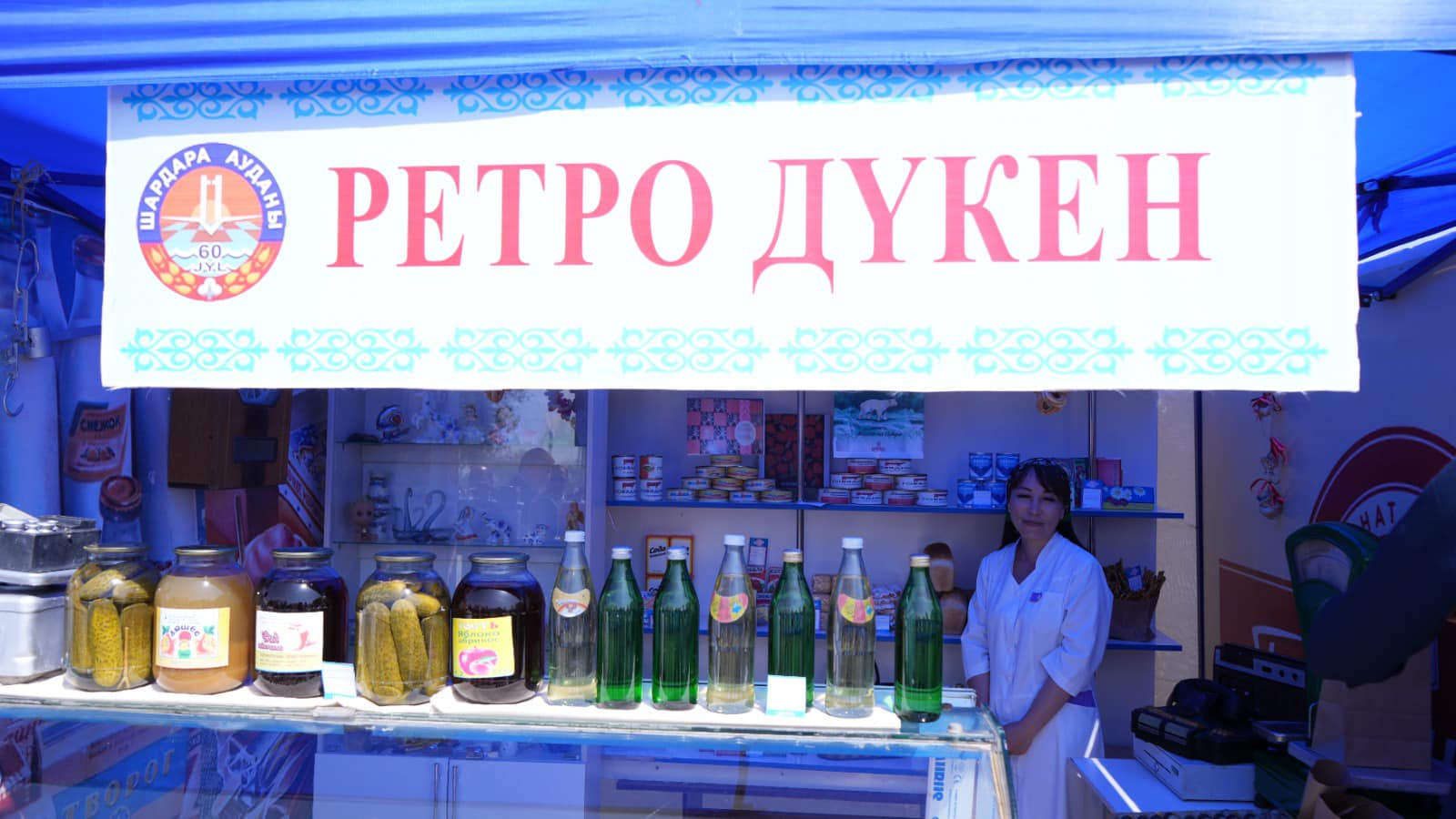 Ретро үлгідегі көліктерден бөлек, ретро дүкен, бөлме, мектеп үстелдері мен тарихи бұйымдар паш етілді. Сондай-ақ, бүгінгі күні Шардара ауданының брендыне айналған Шардара СЭС-ның, «Хамит» АӨК балық зауыты мен «Шардара Армспорт» клубының тарихынан сыр шертер көрме көрсетіліп, келген қонақтар дән риза болды. Мұнан кейін, шара аудандық мәдениет сарайында жалғасып, ең алдымен Шардара ауданының кешегісі мен бүгіні жайлы қысқаша тарихи бейнеролик көрсетілді. Мерейтойға жиналған қауымды аудан әкімі Арман Қарсыбаев құттықтады.