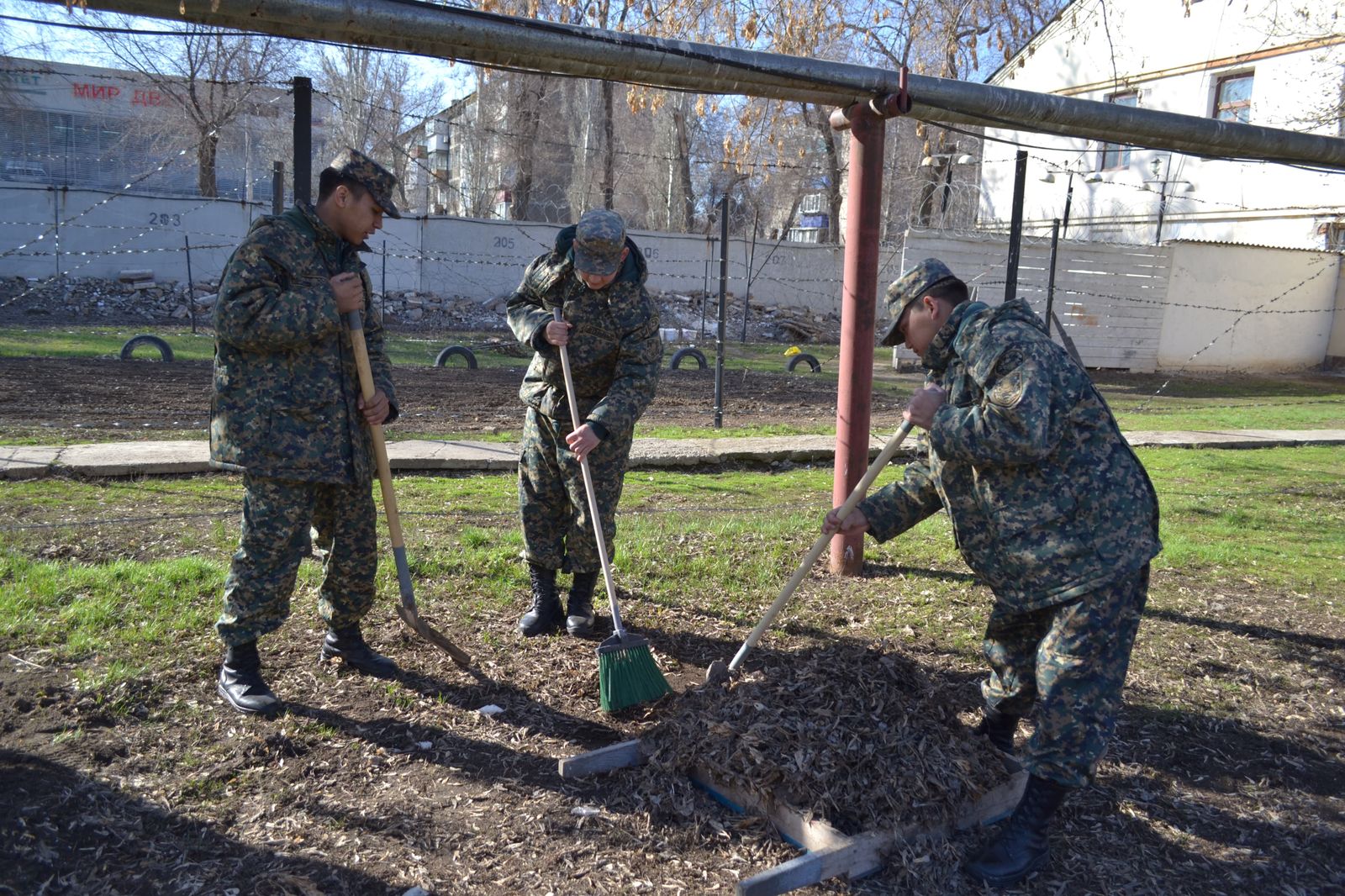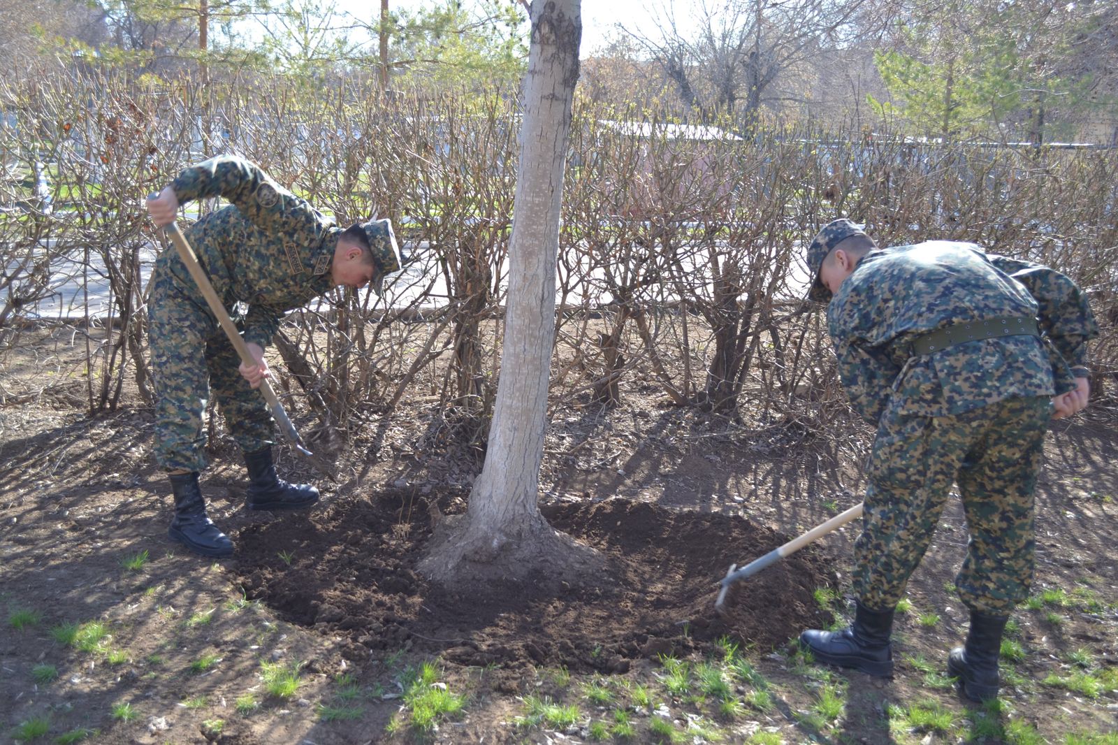 Әскери қызметшілер аумақтарды тазалауға, саябақ аймақтарын абаттандыруға, сондай-ақ шекараларды, ағаштарды, орындықтарды және шағын сәулет нысандарын бояуға белсенді қатысты.