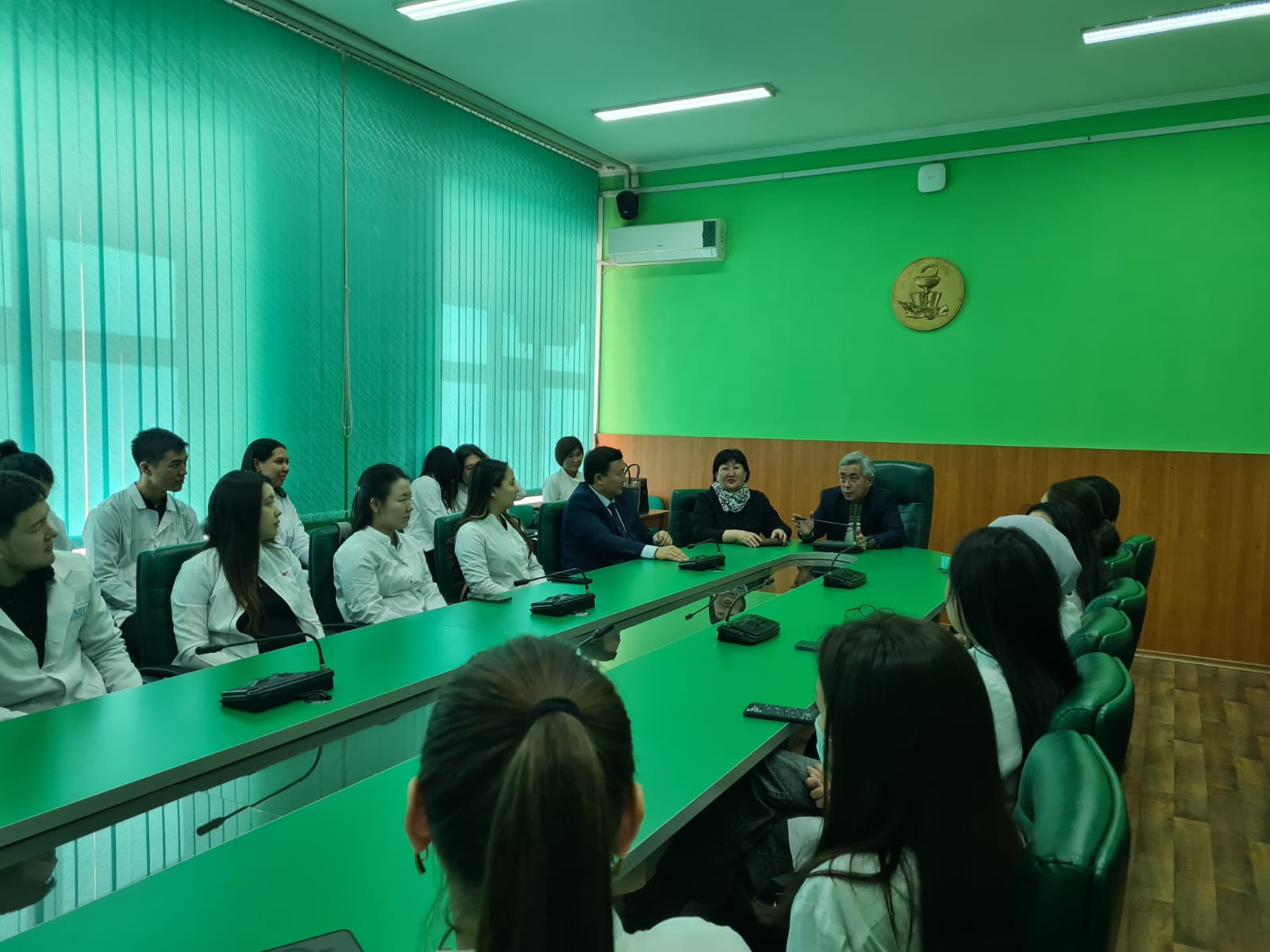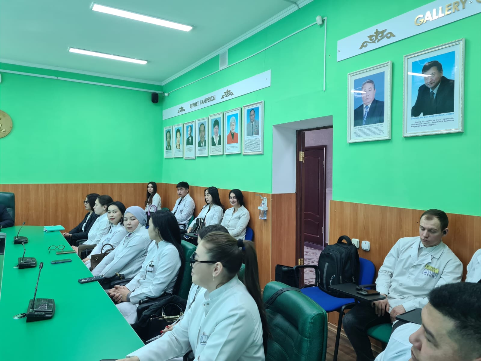 «Семей медицина университеті» КЕАҚ алаңында Денсаулық сақтау министрлігінің Медициналық және фармацевтикалық бақылау комитетінің Абай облысы бойынша департаментінің (бұдан әрі-Департамент) басшысы Н.С.Ибраев Павлодар облысы департаменті басшысының орынбасары К.З. Ақшабаевамен бірлесіп «Фармация» және «Қоғамдық денсаулық сақтау» факультеттерінің курстарын аяқтайтын студенттермен кездесу өткізді.