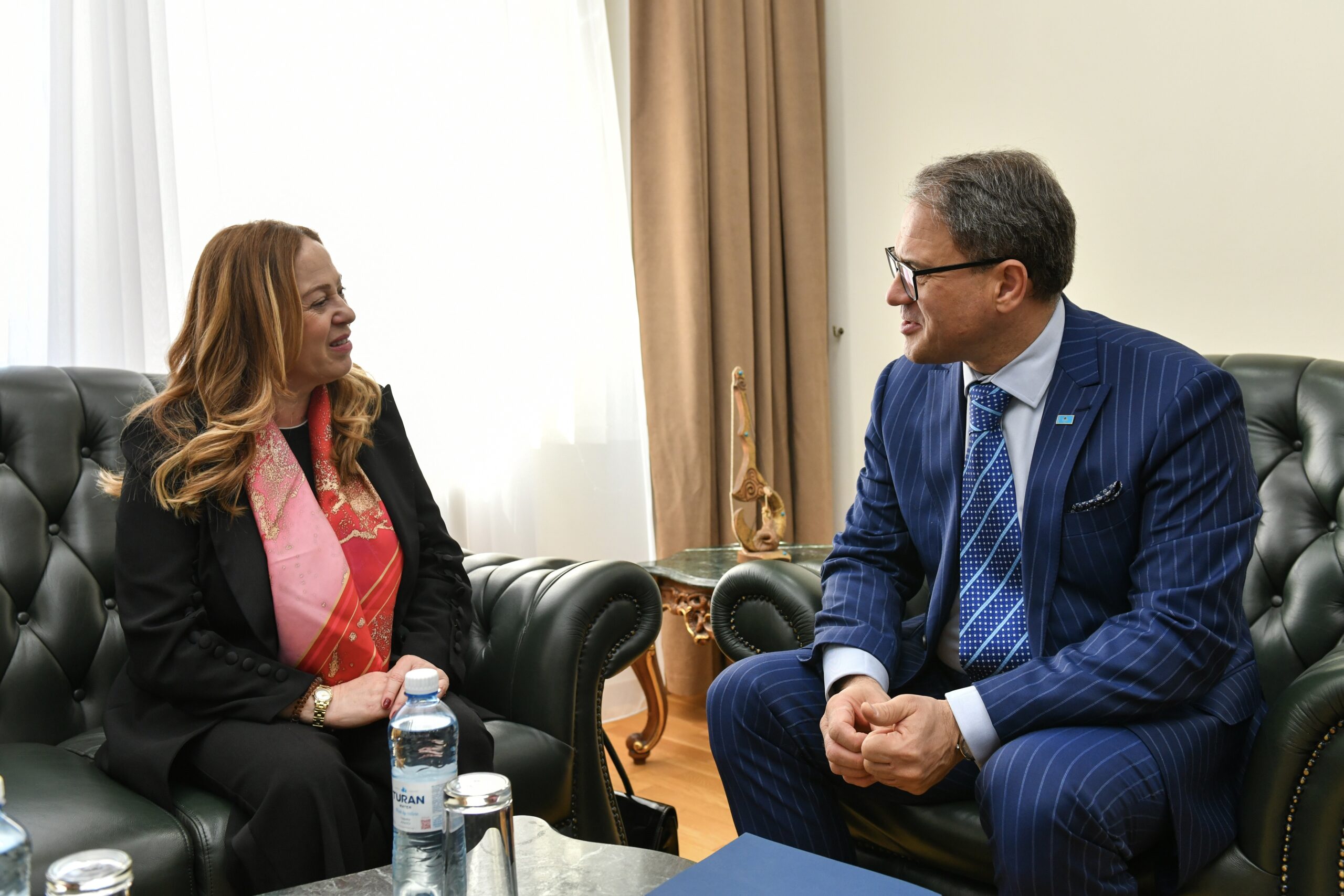 Астана, 2025 жылғы 16 сәуір – Қазақстан Республикасы Сыртқы істер министрінің орынбасары Роман Василенко Албанияның Қазақстанға жаңадан тағайындалған Елшісі (қоса атқарушы) Блерта Кадзадештен сенім грамоталарының көшірмелерін қабылдады.