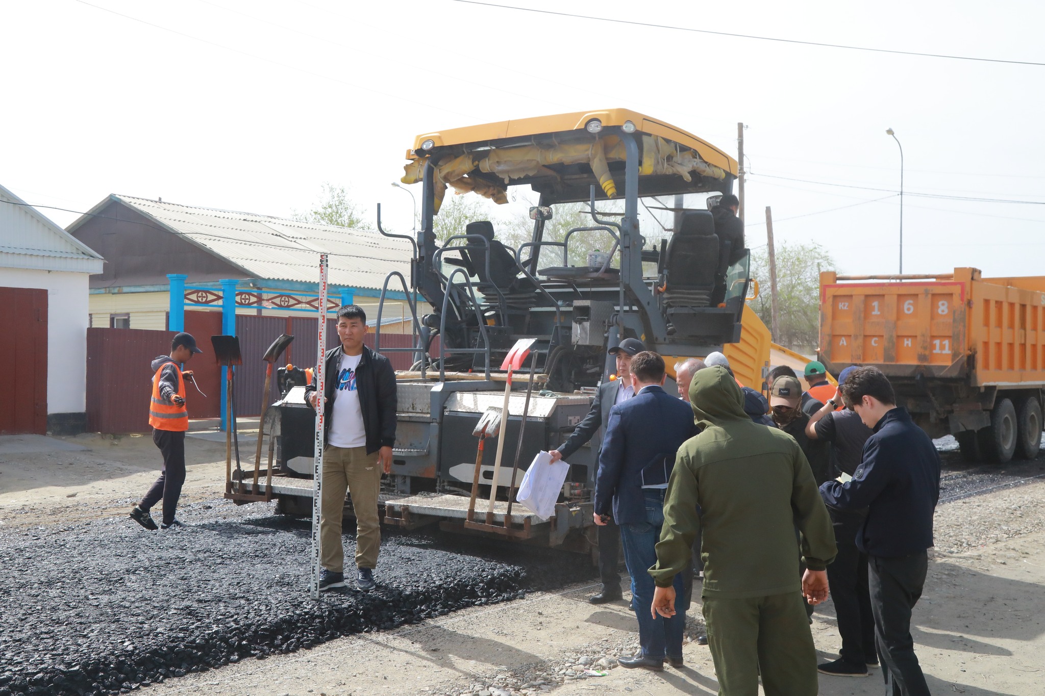 Мұнан соң М.Дулатов көшесіне жүргізіліп жатқан асфальттау жұмысының жай-күйімен танысты. Қазіргі таңда бұл жұмыстарды жергілікті «Арал құрылысы» ЖШС мердігер мекемесі қолға алған. Мекеме басшысы М.Құлмырзаевтың айтуынша жұмыстар әзірге мекеменің өз қаржысы есебінен қолға алынып жатыр. Өткен жылы басталған жұмыс биыл қайта жалғасын тауып, қазіргі уақытта үшінші көше асфальттануда. Кәсіпкер М.Құлмырзаев қаржының мүмкіндігіне қарай барлығы 7 көшені тақтайдай тегіс жолға айналдыруға ниетті.