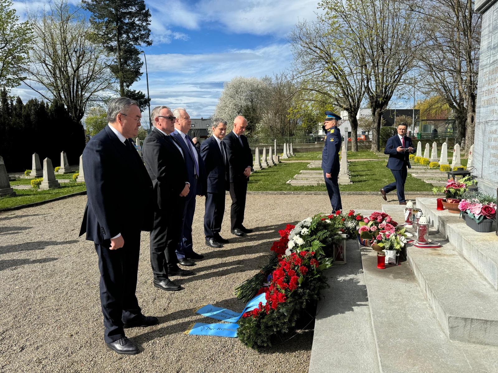 Вена, 2025 жылғы 15 сәуір – Екінші дүниежүзілік соғыстағы Жеңістің 80 жылдығын атап өту аясында Төменгі Аустрия федералды жерінің астанасы Санкт-Пёльтен қаласында Венаны азат ету операциясы барысында қаза тапқан кеңес сарбаздарының есімдері жазылған мемориалдық тақтаның салтанатты ашылуы өтті. Қаһармандар арасында Аустрияны фашистік әскерлерден азат ету шайқастарына қатысқан қазақстандықтар да бар. Гүл шоқтарын қою рәсіміне ТМД елдерінің Елшілері мен дипломаттары, Төменгі Аустрия әкімшілігінің өкілдері және жергілікті тұрғындар қатысты. Гүл шоқтарын қою рәсіміне ТМД елдерінің Елшілері мен дипломаттары, Төменгі Аустрия әкімшілігінің өкілдері және жергілікті тұрғындар қатысты.