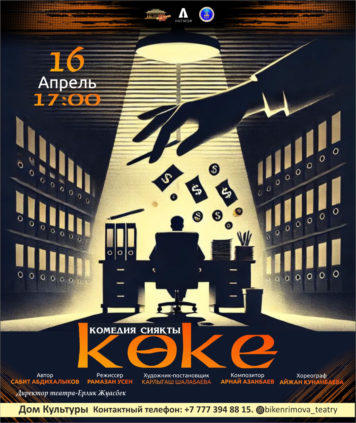 Сәбит Әбдіхалықовтың «Көке» қойылымның режиссері – Рамазан Үсен, қоюшы-суретші – Қарлығаш Шалабаева.
