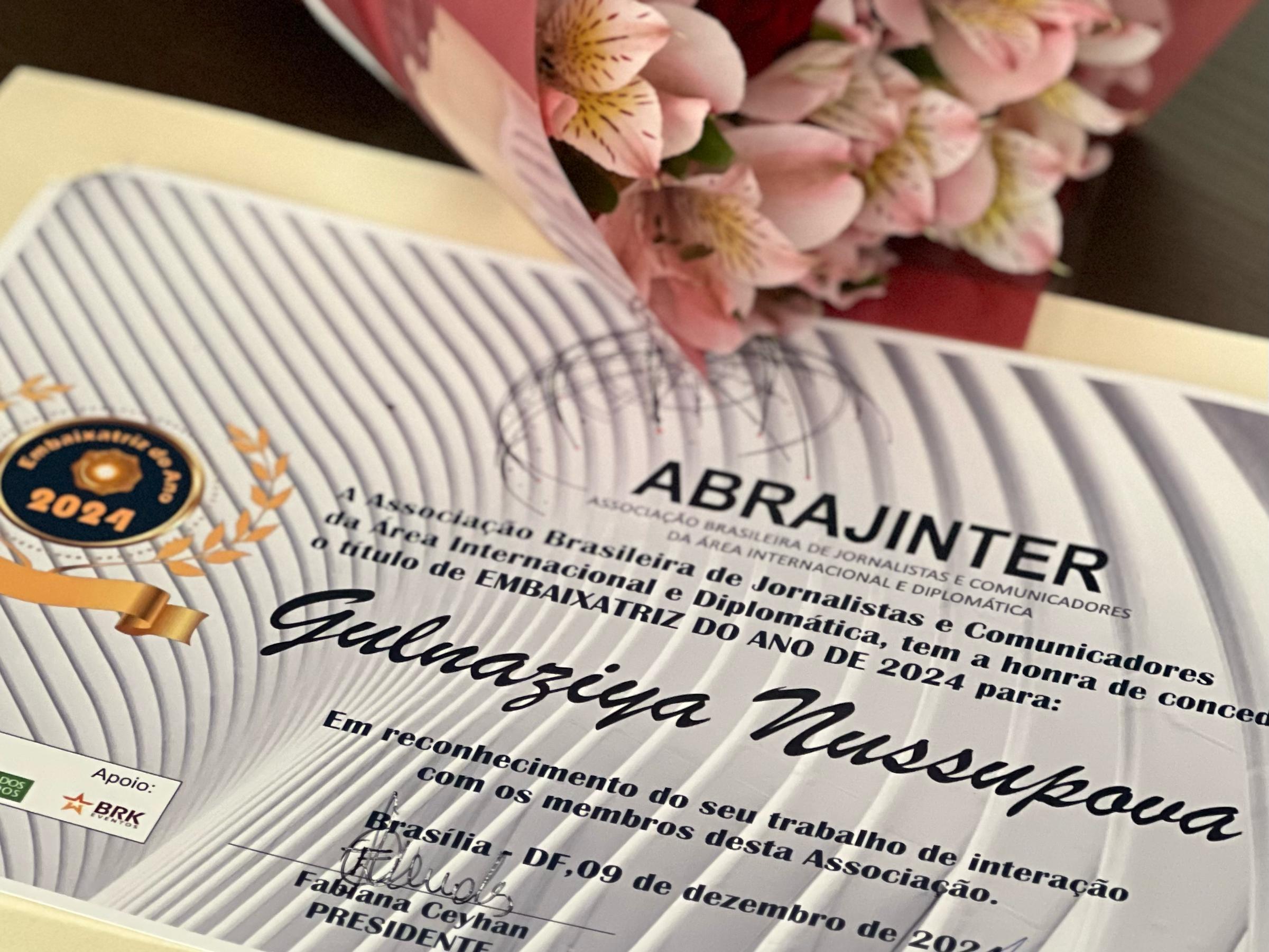Анықтамалық: «ABRAJINTER» – Бразилияның халықаралық және дипломатиялық салалардағы журналистер мен коммуникаторлардың ассоциациясы, тәуелсіз ұйым болып табылады. Ассоциаяция, жыл сайын Бразилияда шетелдік елшілерді, журналистерді, саяси және экономикалық топтардың өкілдерін және өз саласында ерекшеленетін және Бразилия құндылықтарын, мәдениетін және халықаралық дамуды ілгерілетуге үлес қосқан ел қайраткерлерін марапаттайды.
