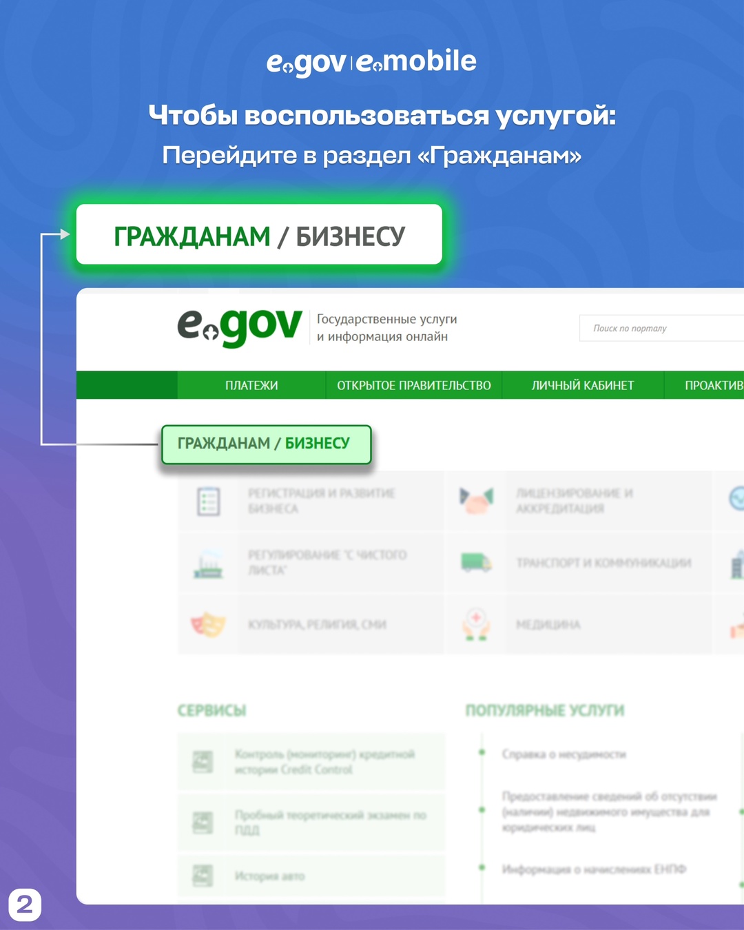 Бұл қызметті eGov.kz порталында және eGov Mobile қосымшасында алуға болады. eGov.kz анықтаманы алу үшін: